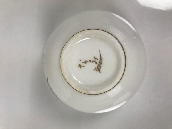 This vintage Japanese Narumi bone china porcelain teacup is white with brown and gold leaves and a gold band inner rim. This small style of teacup is excellent with a chataku (saucer/coaster) beneath.