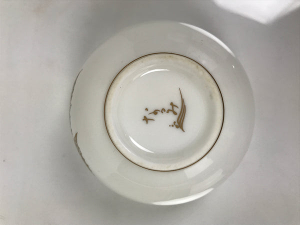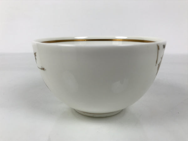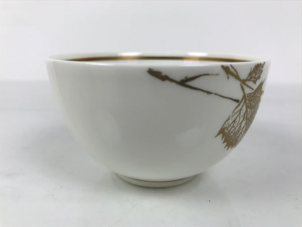 This vintage Japanese Narumi bone china porcelain teacup is white with brown and gold leaves and a gold band inner rim. This small style of teacup is excellent with a chataku (saucer/coaster) beneath.