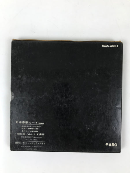 This is a set of vintage Japanese records, flexi-discs, and paper cards. It contains three records (not tested), twenty-four Ukiyo-e cards, and twenty-one nude images of women. The title of this set is "Japanese Erotic Songs and Cards." Twenty Japanese erotic songs are on the records, and the lyrics are on the back of the Ukiyo-e cards. On the back of the nude cards are erotic but funny short stories.
