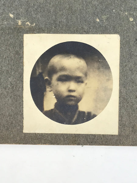 This is an original antique Taisho Era portrait photograph of a group of young men and women posing on a trip/vacation. The photo is in a soft sepia tone and it comes adhered to a thick card. There is a mix of traditional casual kimono and modern suits and hats. There is a picture of a small boy on the back side of the card which hints this photo was taken from an album.
