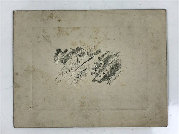 This is an antique travel souvenir portrait photograph taken in front of Kegon Falls in Nikko, a popular natural tourist destination. The photo depicts a group of gentlemen dressed in traveling kimono complete with traditional shoes and hiking sticks. It comes adhered to a thick paper card and has a black stamp on the back side.