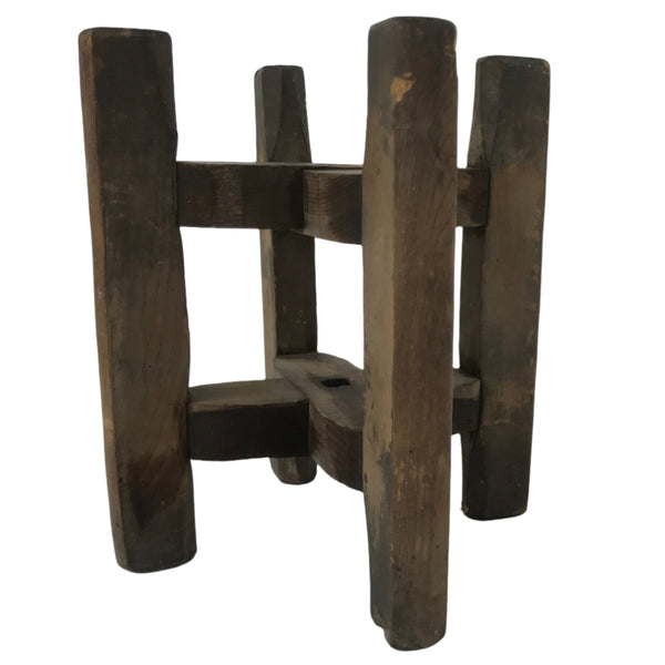 This is a vintage Japanese spool, or itomaki, used to wind and store copious amounts of silk thread used in the production of kimono and other popular traditional textiles. The thread is simply wound around the frame like a modern bobbin. This item was used in tandem with a machine called "zakuri" which was typically hand-powered and spun silk thread with quick efficiency. These spools can also be repurposed as stands for vases and flower pots or other display items.