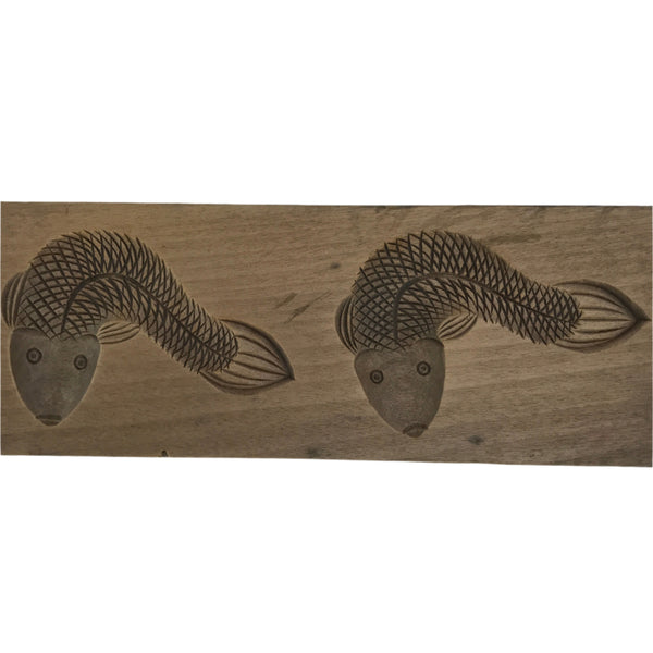 Japanese Wood Carved Kashigata Cake Mold Vtg Sweet Wagashi Goby Fish Haze Kg696