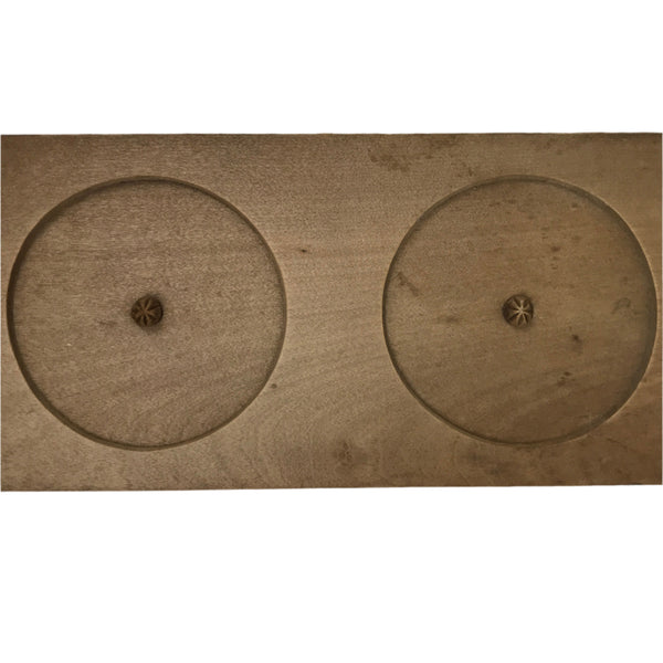 This two-panel kashigata mold is carved with the design of two mandarin oranges (mikan). This mold can be used to make sweets or as an eye-catching decorative item.