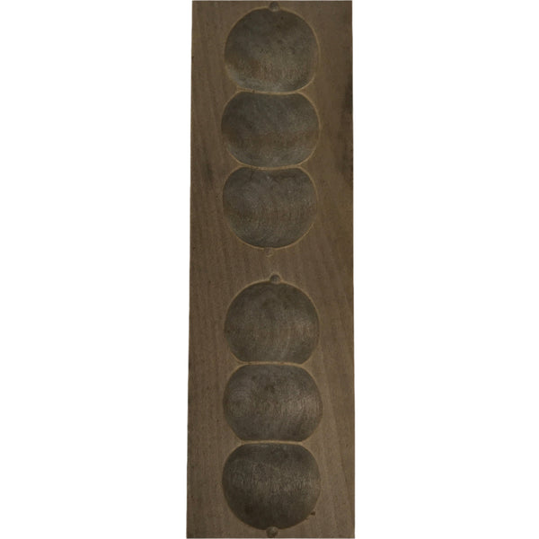 This two-panel kashigata mold is carved with the design of two chains of mochi dango, a popular mochi snack with iconic pink, white, and green coloring. This mold can be used to make sweets or as an eye-catching decorative item.