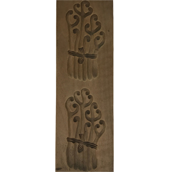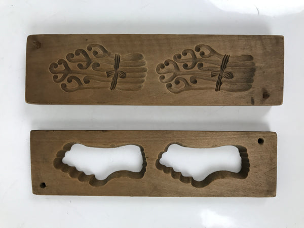 This two-panel kashigata mold is carved with the design of two bundles of bracken ferns (warabi). This mold can be used to make sweets or as an eye-catching decorative item.