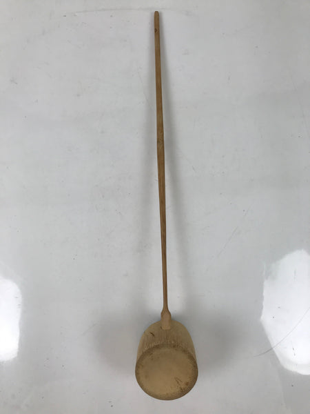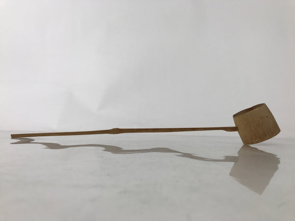 This is a vintage Japanese traditional tea ceremony utensil called hishaku. It is used for scooping hot water from a teapot or chagama into the matcha chawan tea bowl. This ladle is made entirely of bamboo with a long handle and a finely hallowed-out scoop, leaving it lightweight and easy to hold.