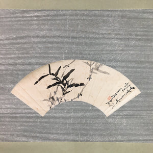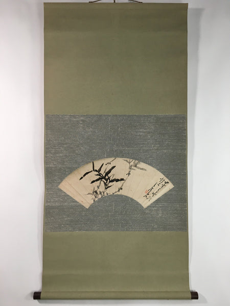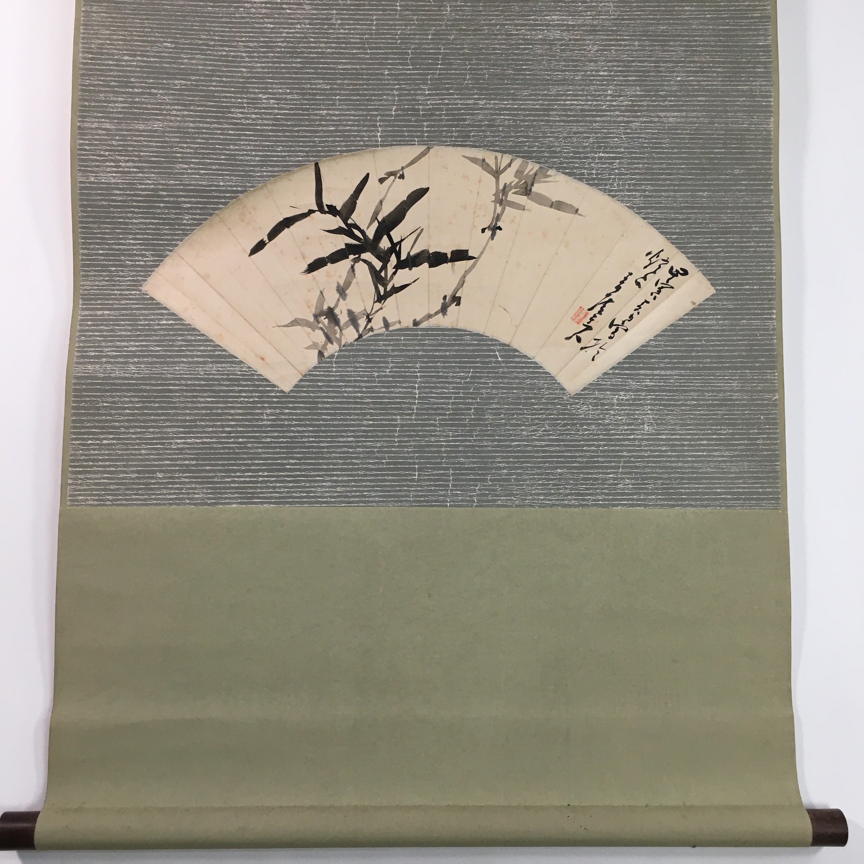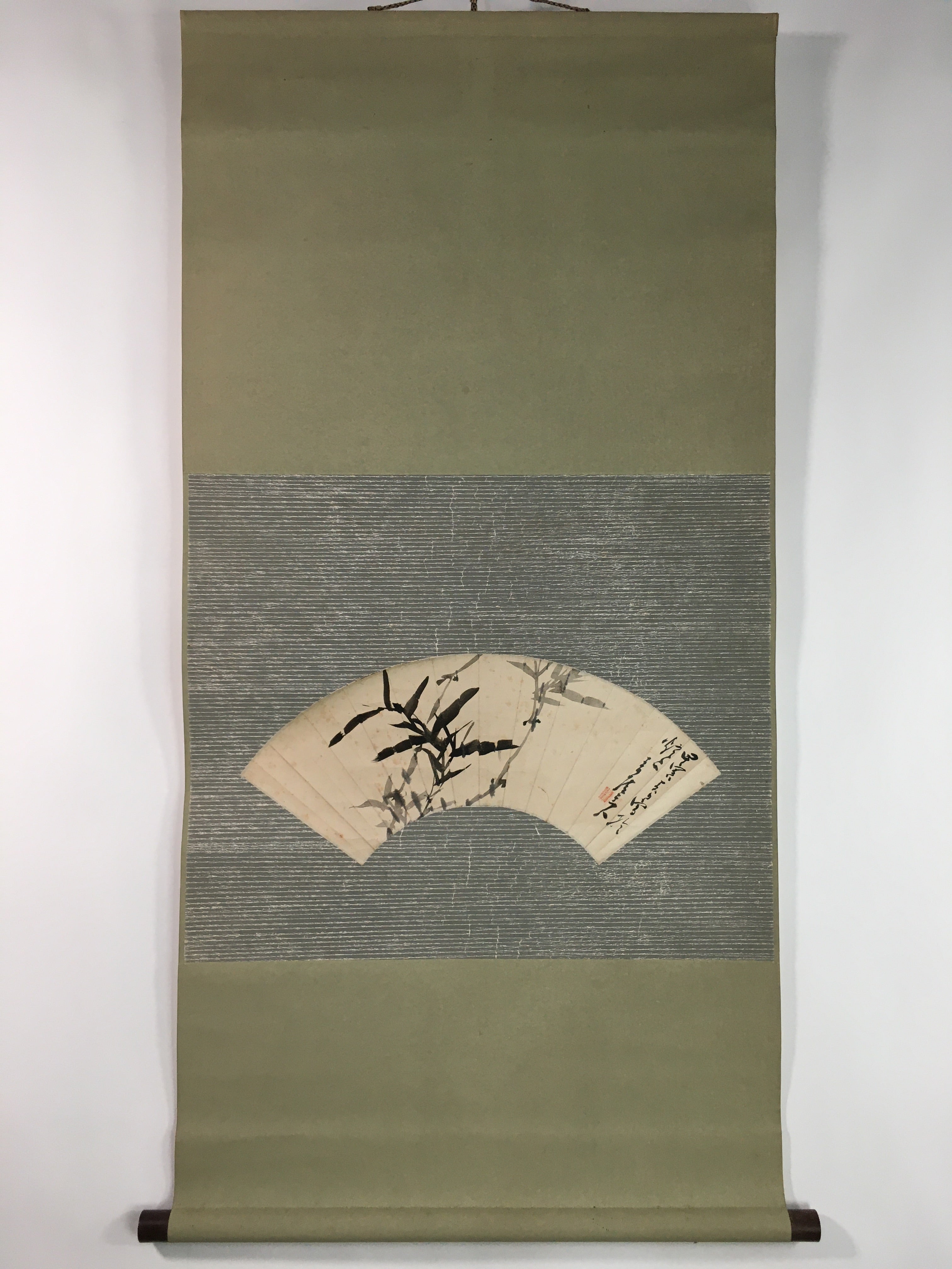 Japanese Hanging Scroll Vtg Kakejiku Kakemono Folding Fan Bamboo SC708
