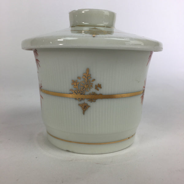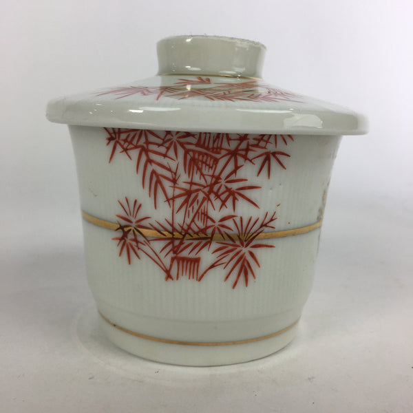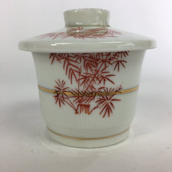 Japanese Porcelain Lidded Soup Bowl Cup Vtg Chawanmushi Red Bamboo PP528