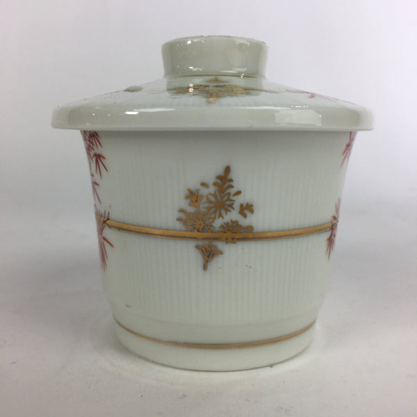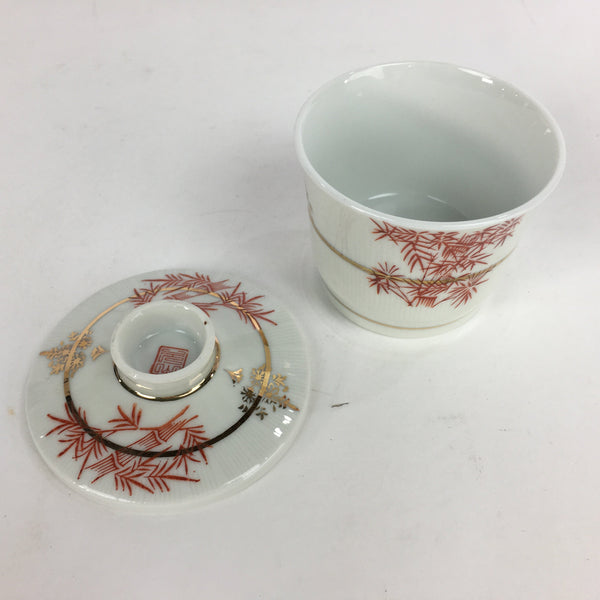 Japanese Porcelain Lidded Soup Bowl Cup Vtg Chawanmushi Red Bamboo PP529