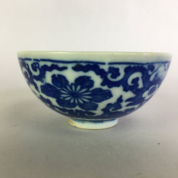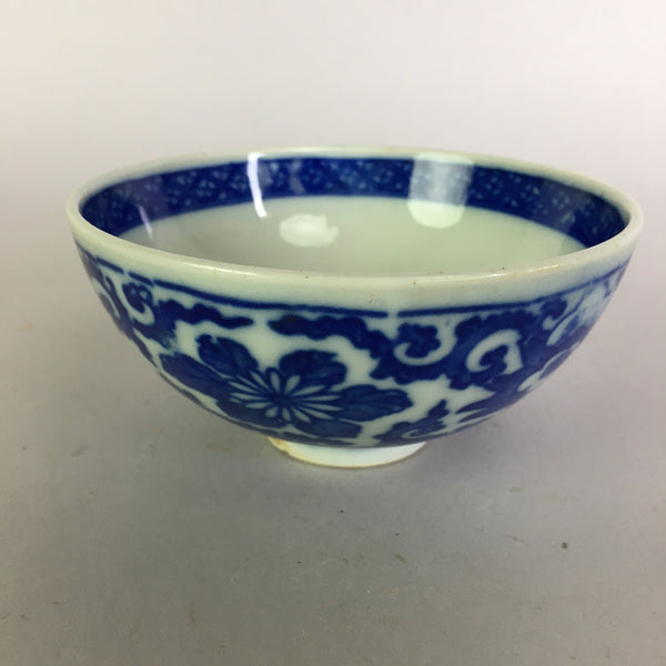 Japanese Porcelain Rice Bowl Vtg Chawan Blue White Flower Sometsuke PP471