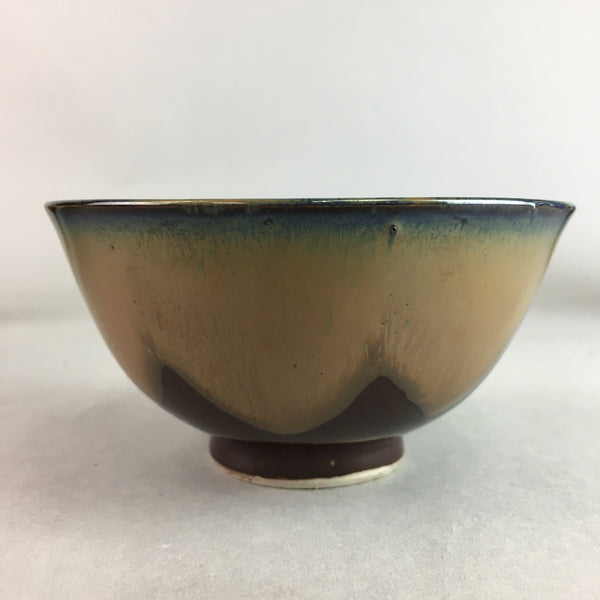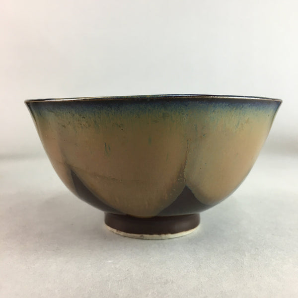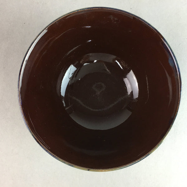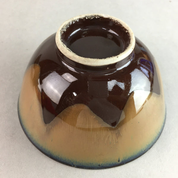 Japanese Porcelain Rice Bowl Vtg Chawan Brown Shiny Smooth Flowing Glaze PP304