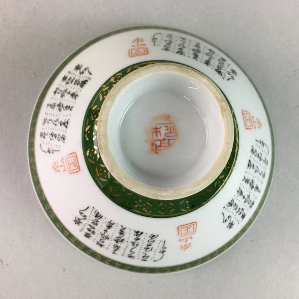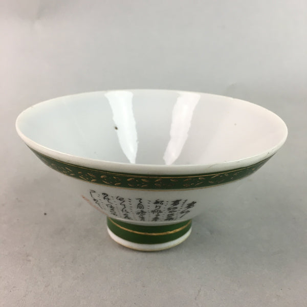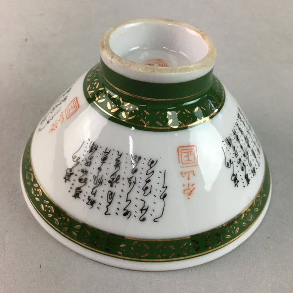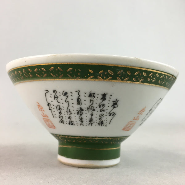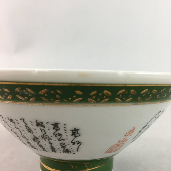 Japanese Porcelain Rice Bowl Vtg Kanji Green Gold Chawan PP165