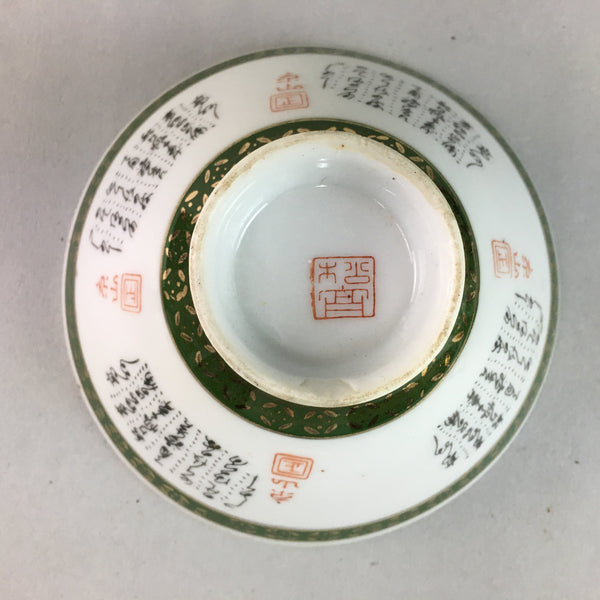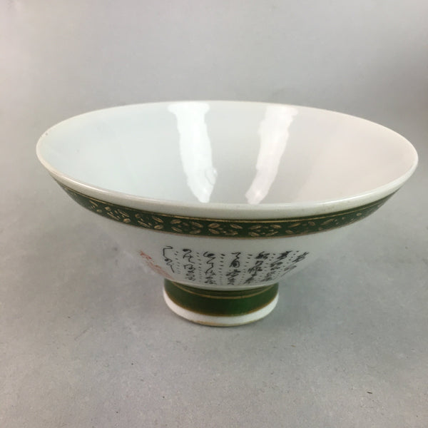 Japanese Porcelain Rice Bowl Vtg Kanji Green Gold Chawan PP177