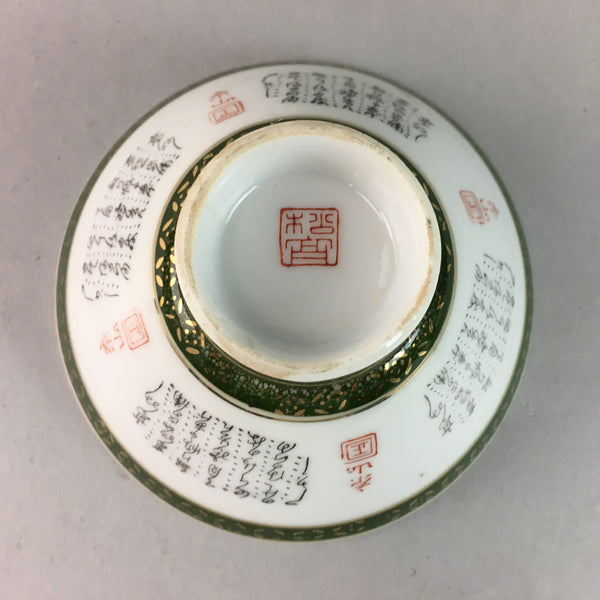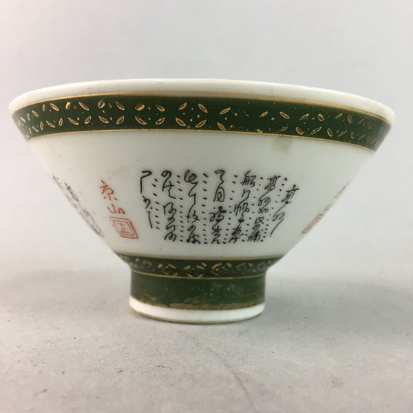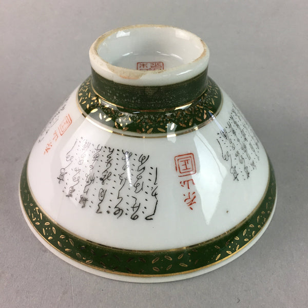 Japanese Porcelain Rice Bowl Vtg Kanji Green Gold Chawan PP181