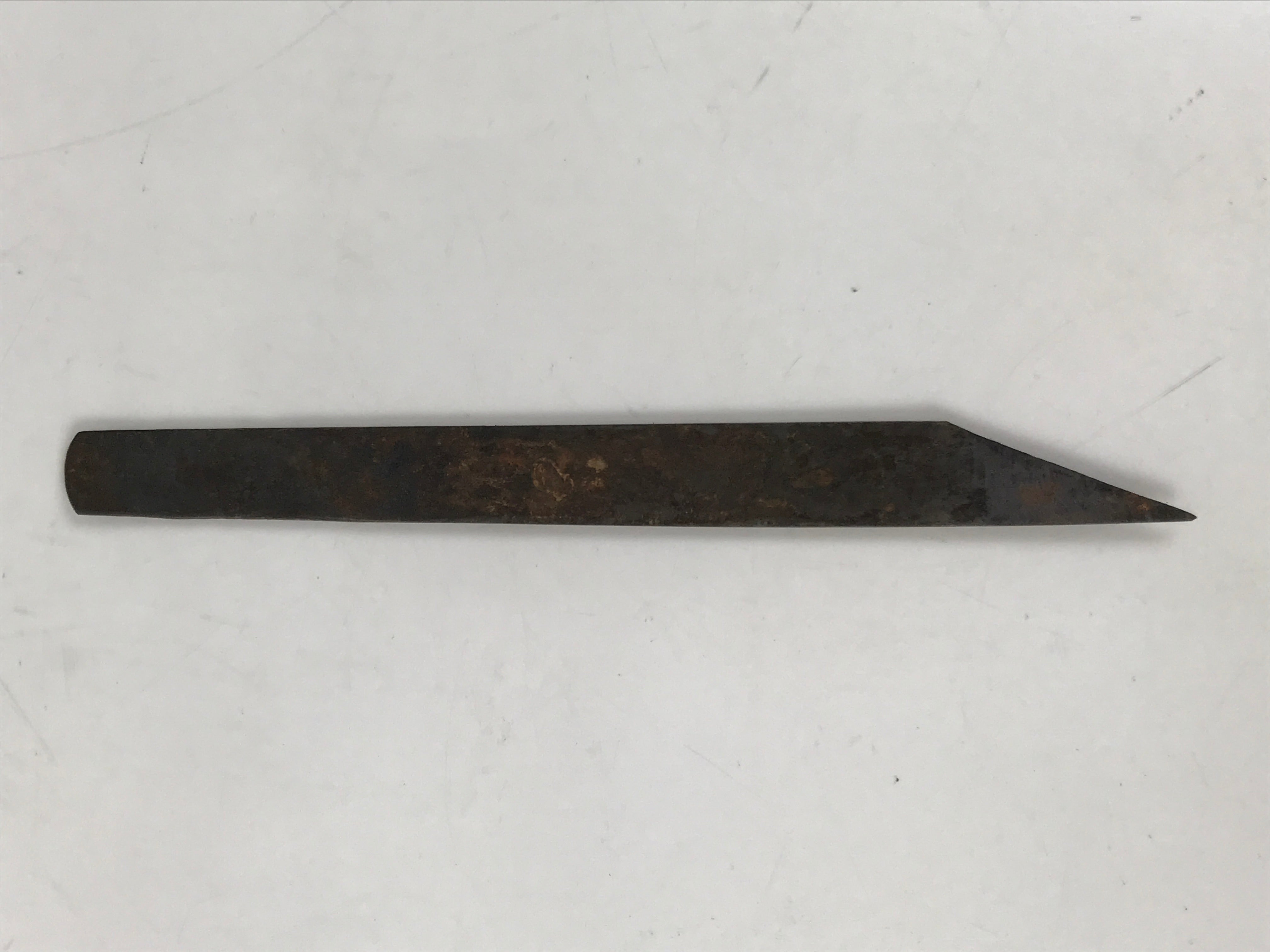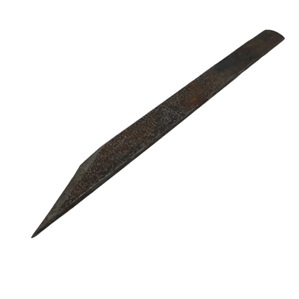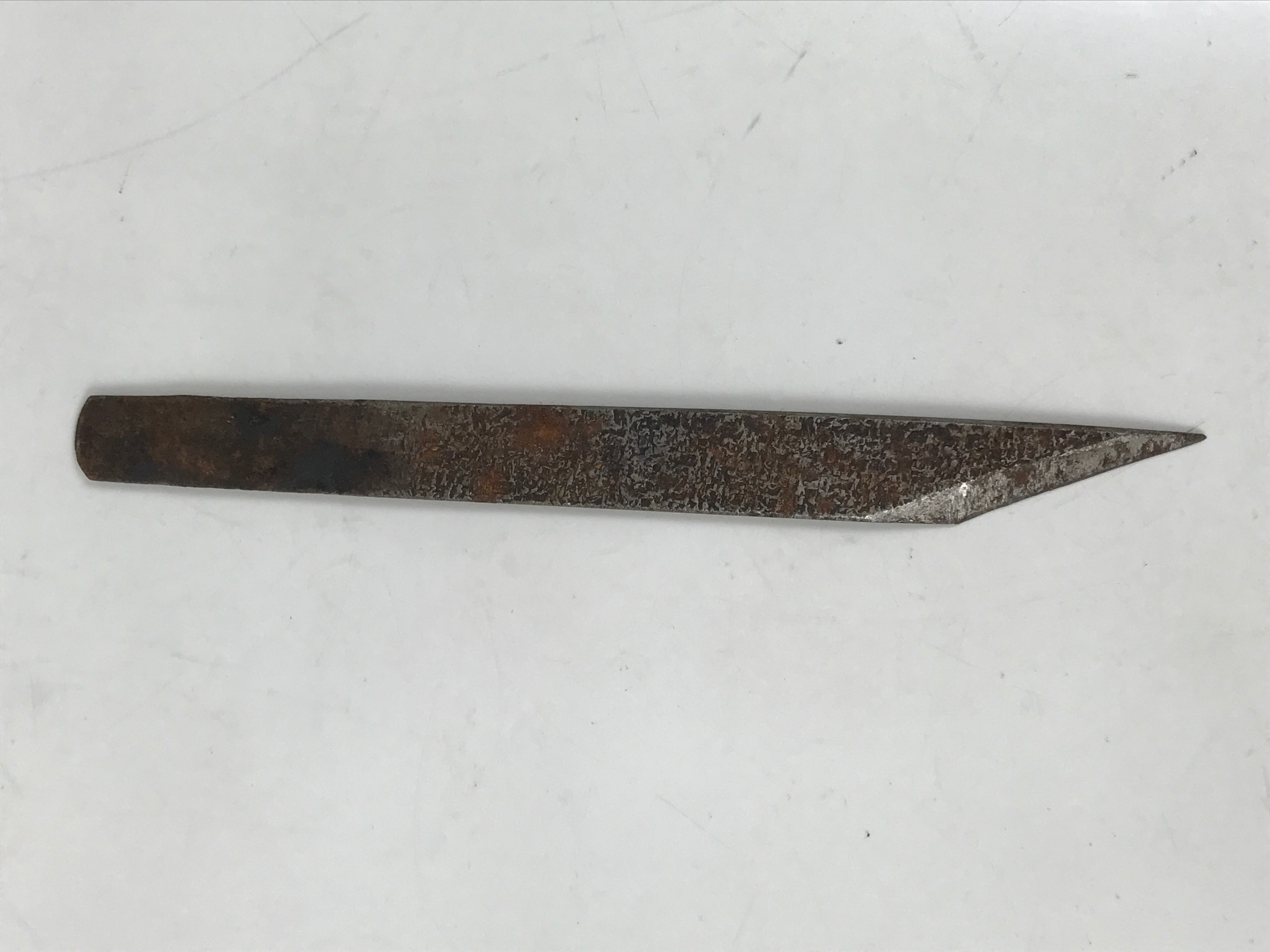 This vintage Japanese woodworking craft knife has a steel blade. This single-edged knife is called Kiridashi-kogatana, and has some inscriptions on the blade.