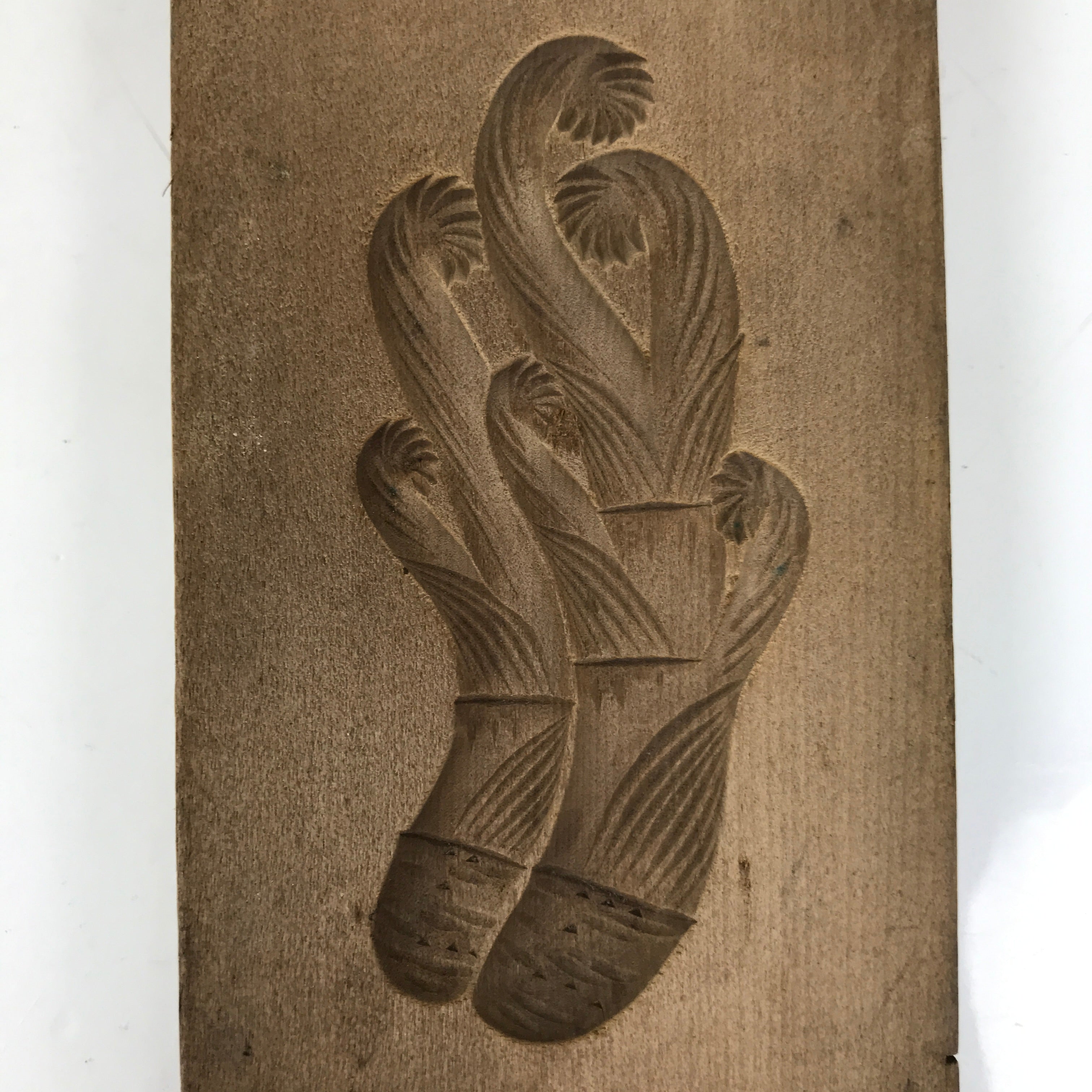 Japanese Wooden Kashigata Cake Mold Vtg Sweet Wagashi Warabi Plant Fern Kg667