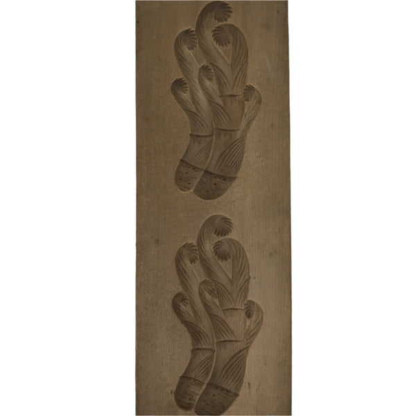 This two-panel kashigata mold is carved with two images of a type of fern called warabi which is used in both cooking and for traditional crafts such as baskets. This mold can be used to make sweets or as an eye-catching decorative item.