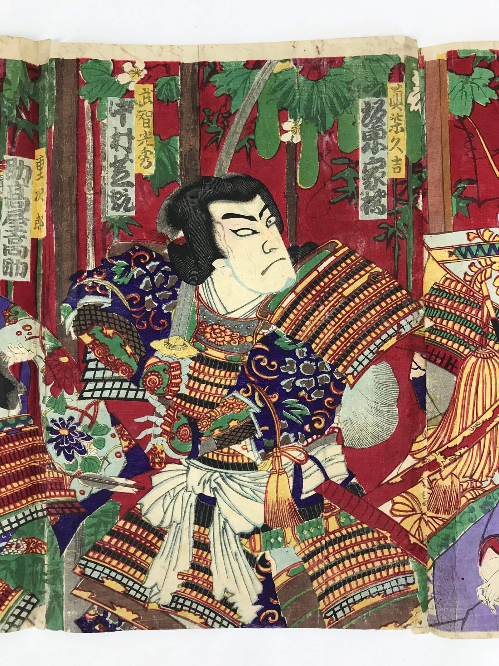 January 21, 2026Antique C1880 Japanese Ukiyoe Woodblock Print Chikanobu Yoshu Kabuki FL242