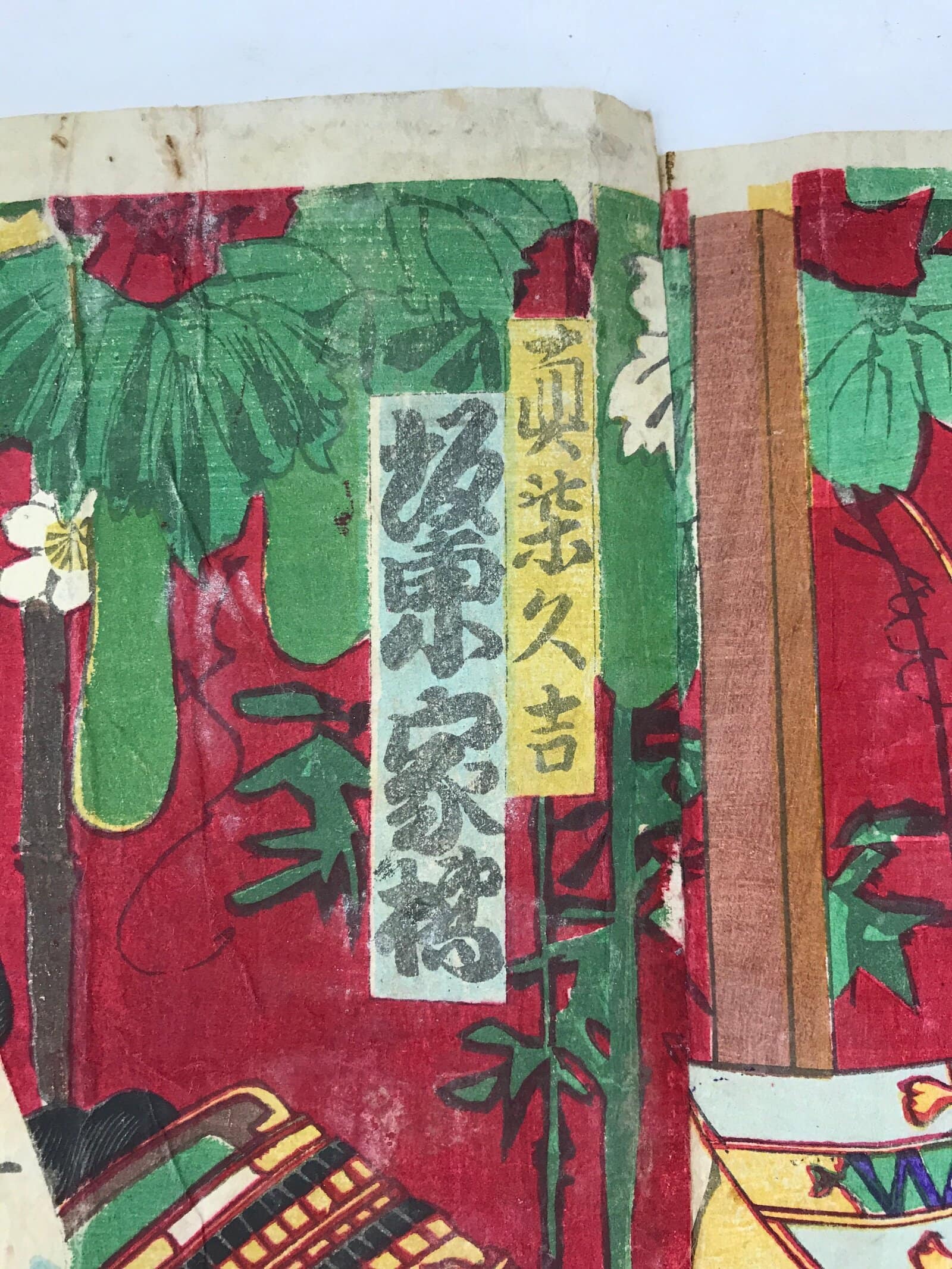 Antique C1880 Japanese Ukiyoe Woodblock Print Sankunishinouchi FL241