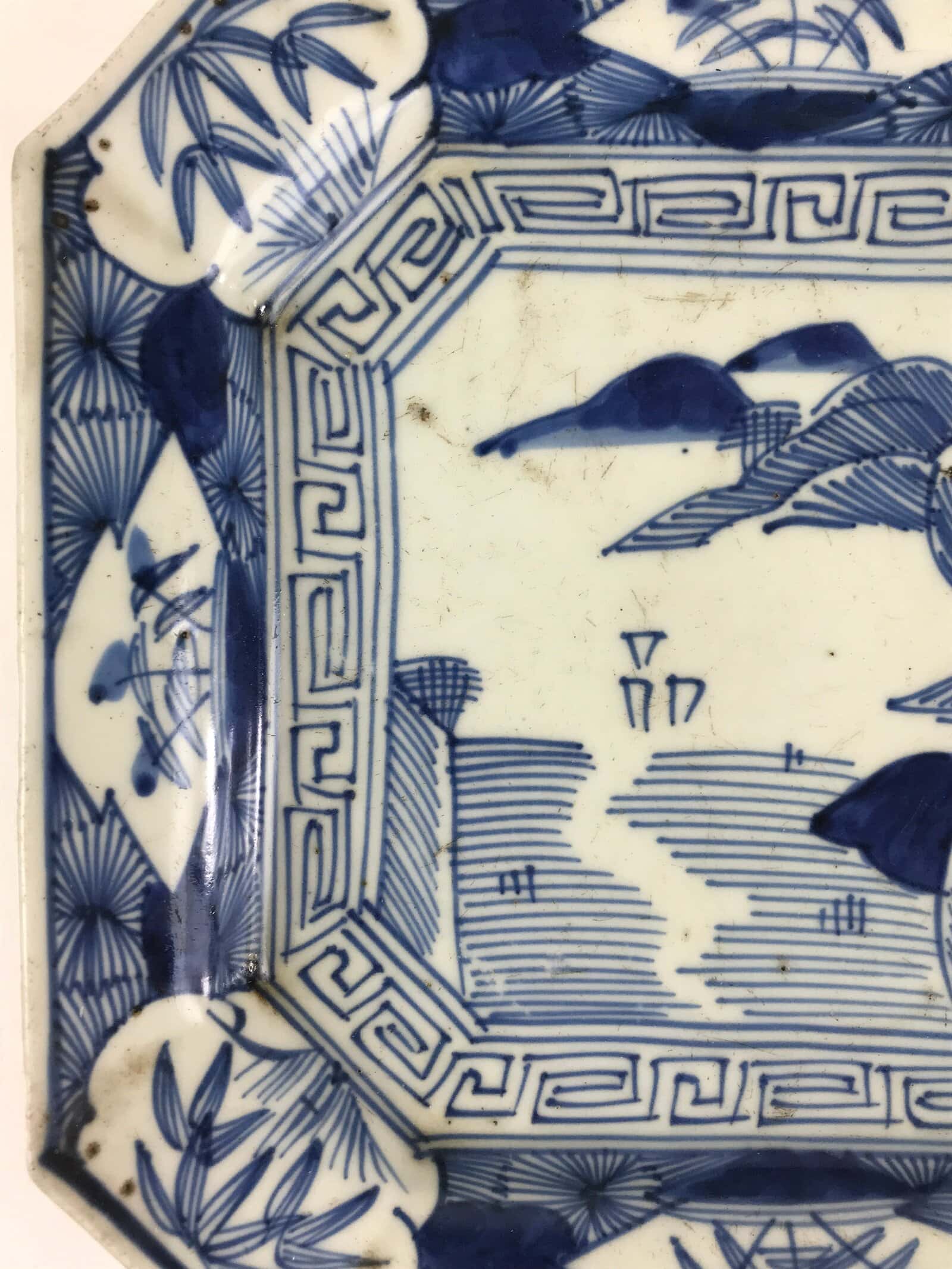 Antique C1900 Japanese Porcelain Plate Blue Sometsuke Mountains Scenery Sansui P