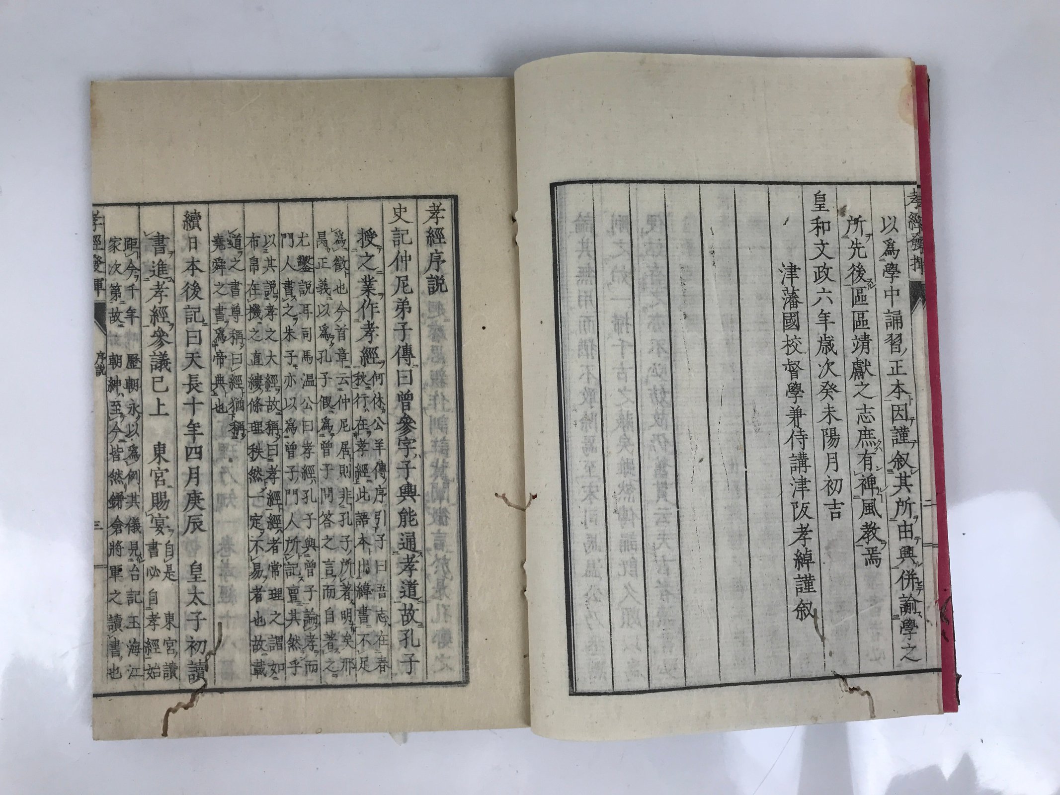 This antique Japanese book, Koukyouhakki, is from Bunsei 9 (1826) and features several texts essential to Confucianism.