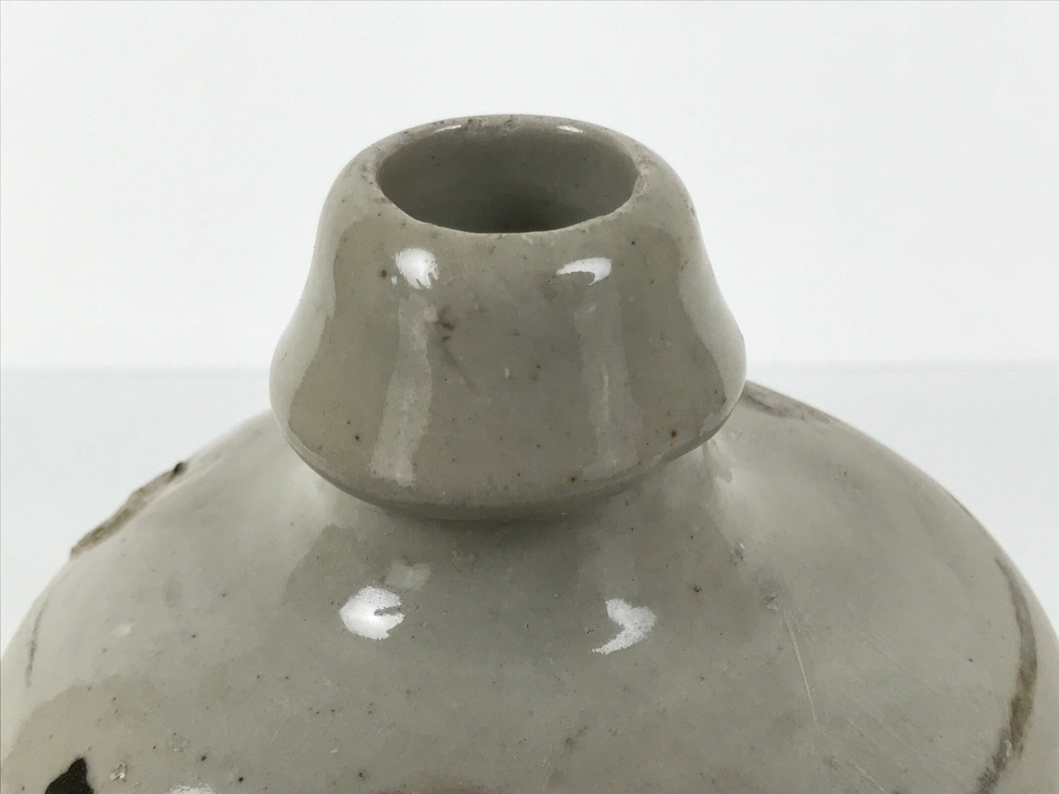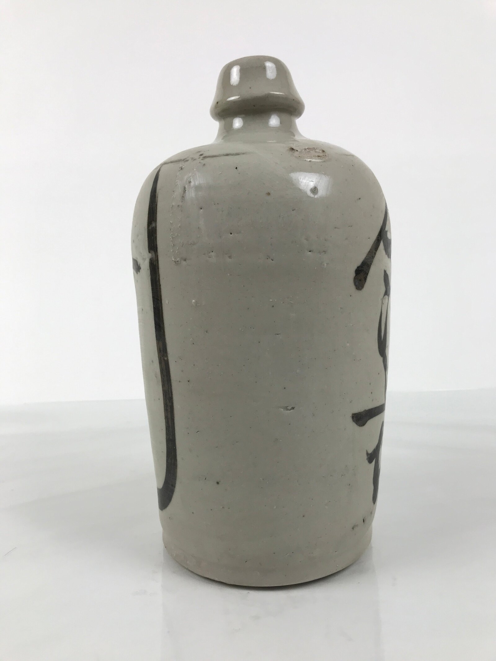 Antique Japanese Ceramic Sake Bottle Kayoi-Tokkuri Gray Kanji Omuraya TS854