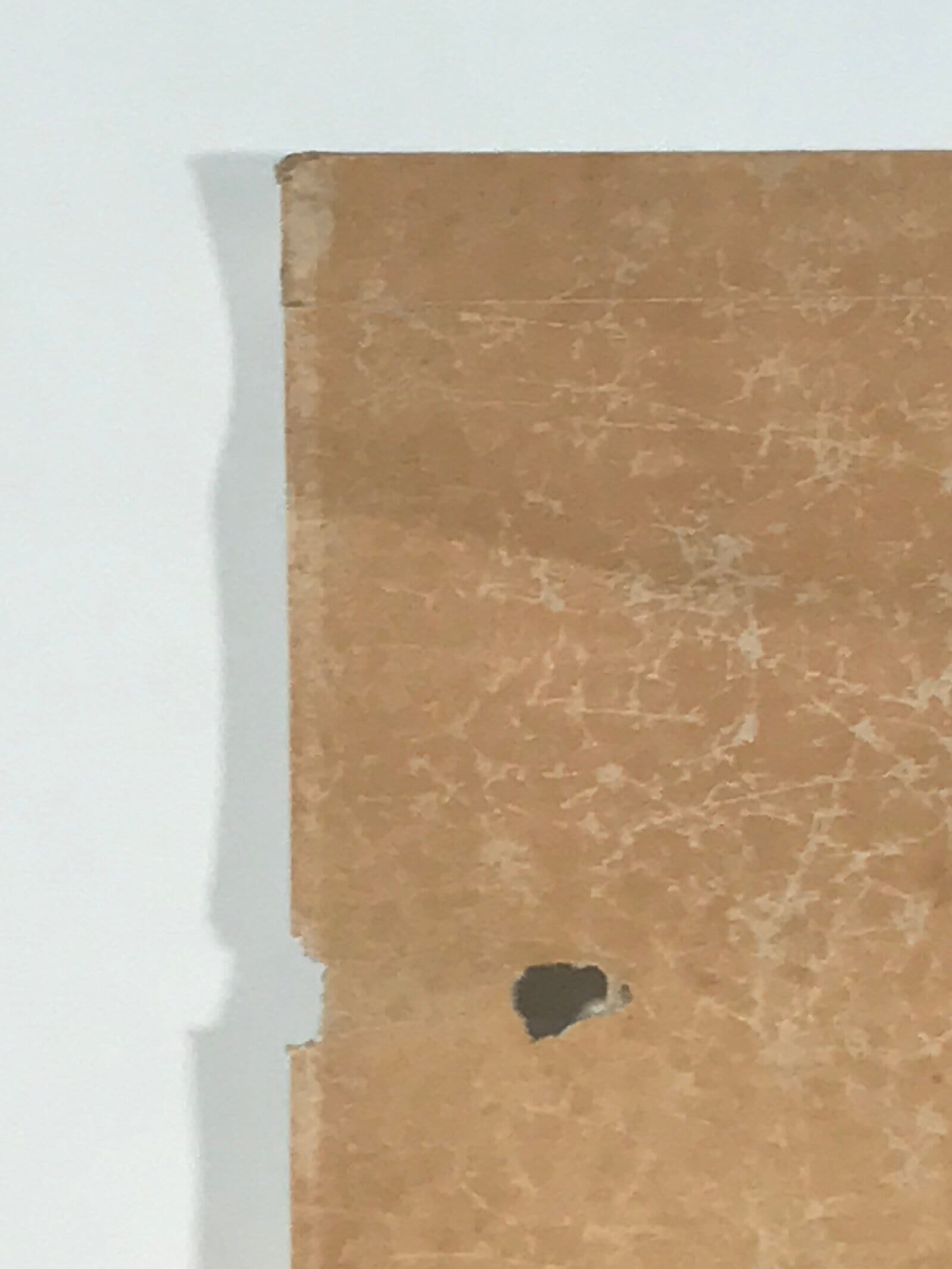 - Good condition considering its age. Stains overall image. Insect damage (hole) on left side of the scroll. Hole at top left corner of scroll. Damage on the back/ outside of scroll. Wear and tear due to age. Please see the photos.