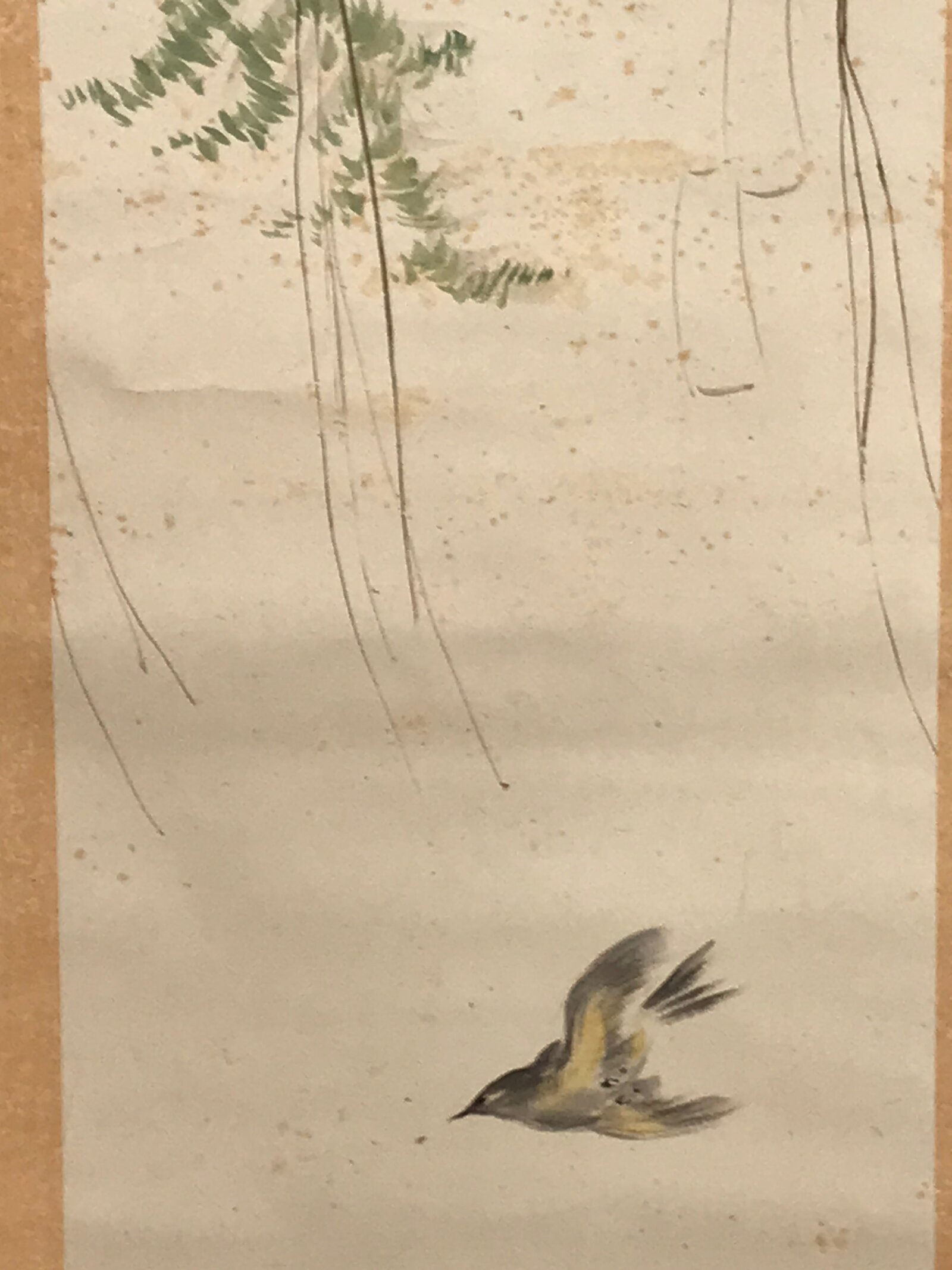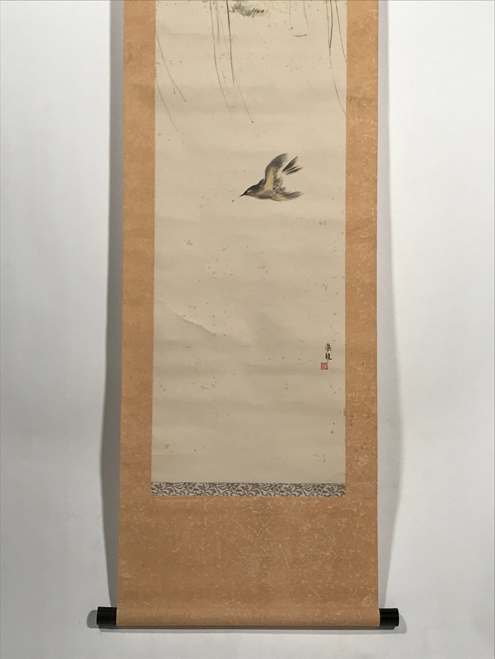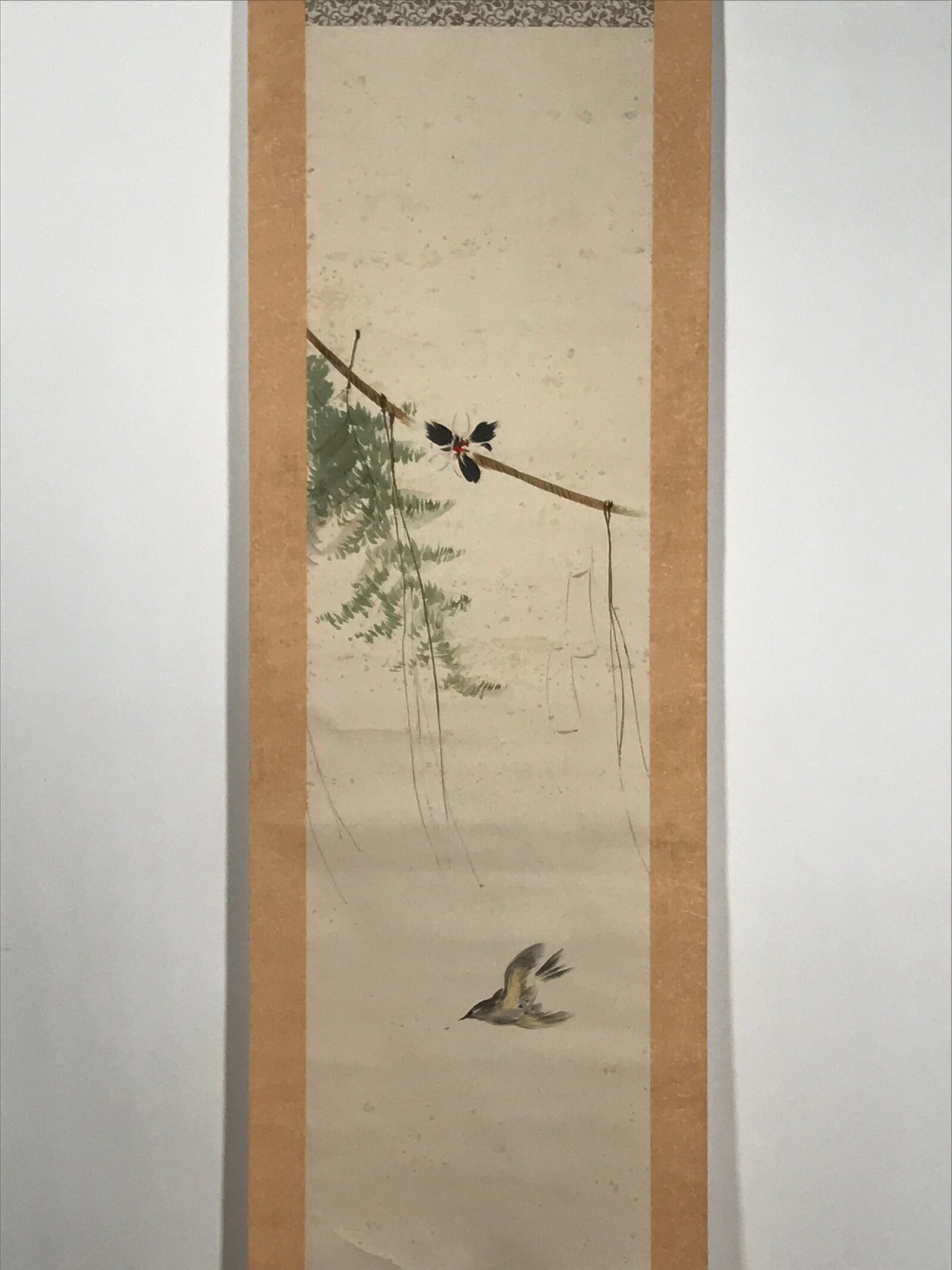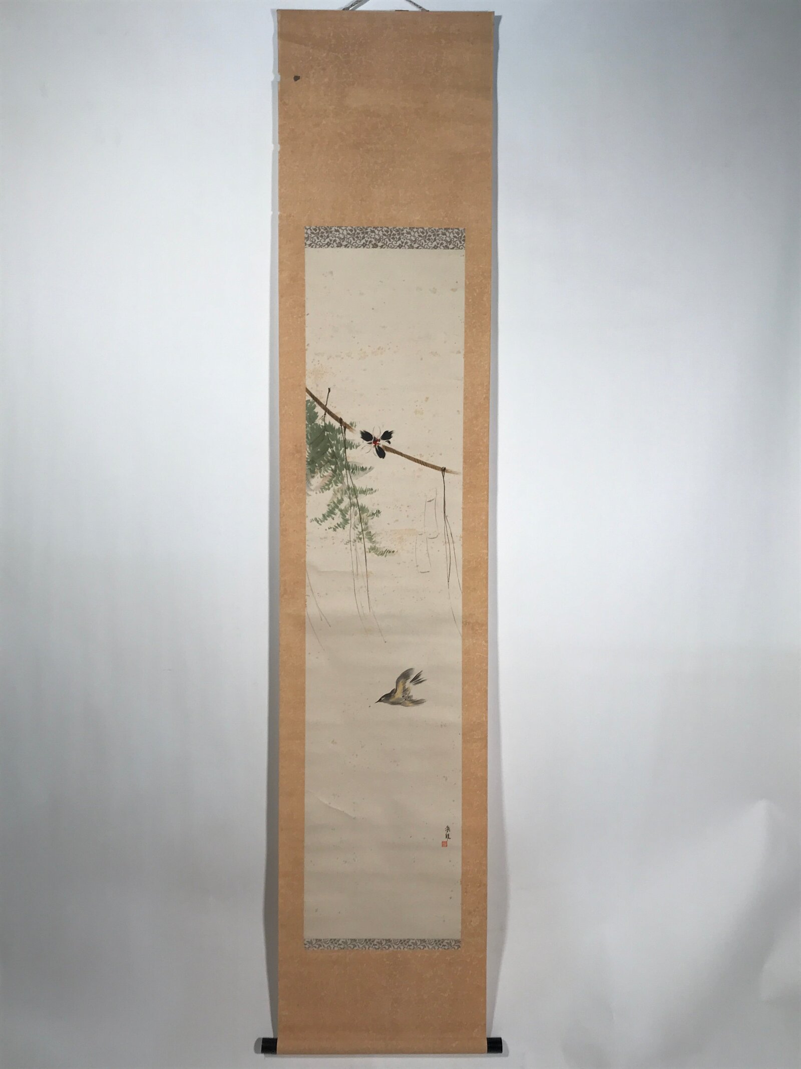 January 25, 2026Antique Japanese Hanging Scroll Kakejiku Bird Flower Painting Kacho Color KJ186