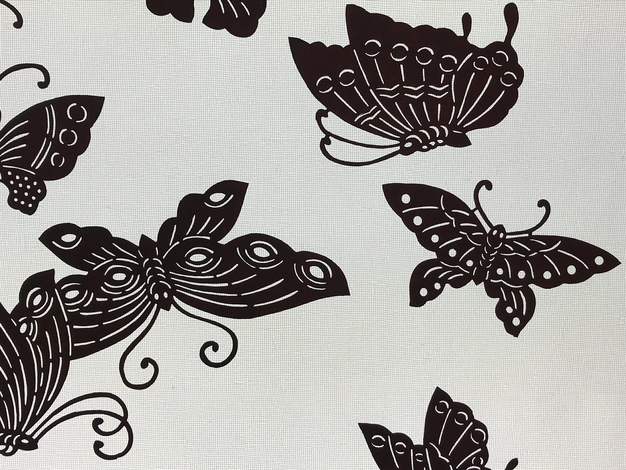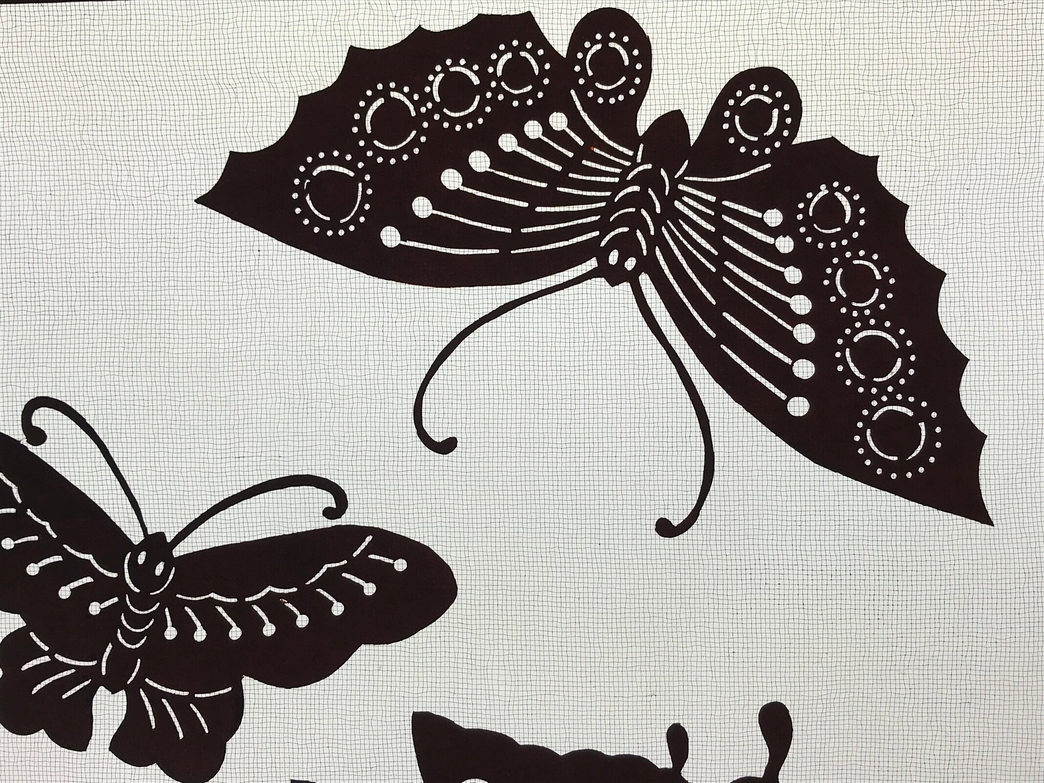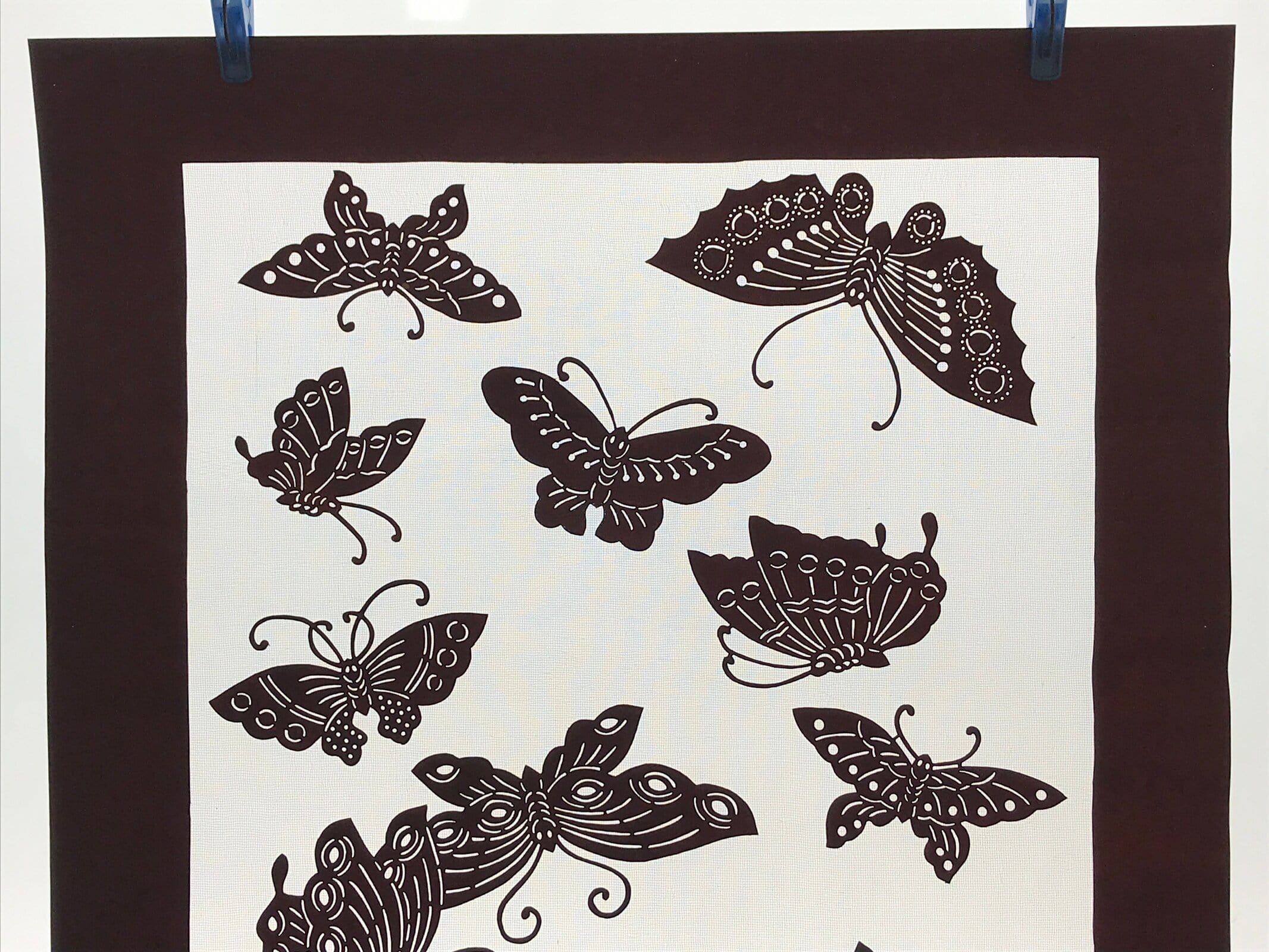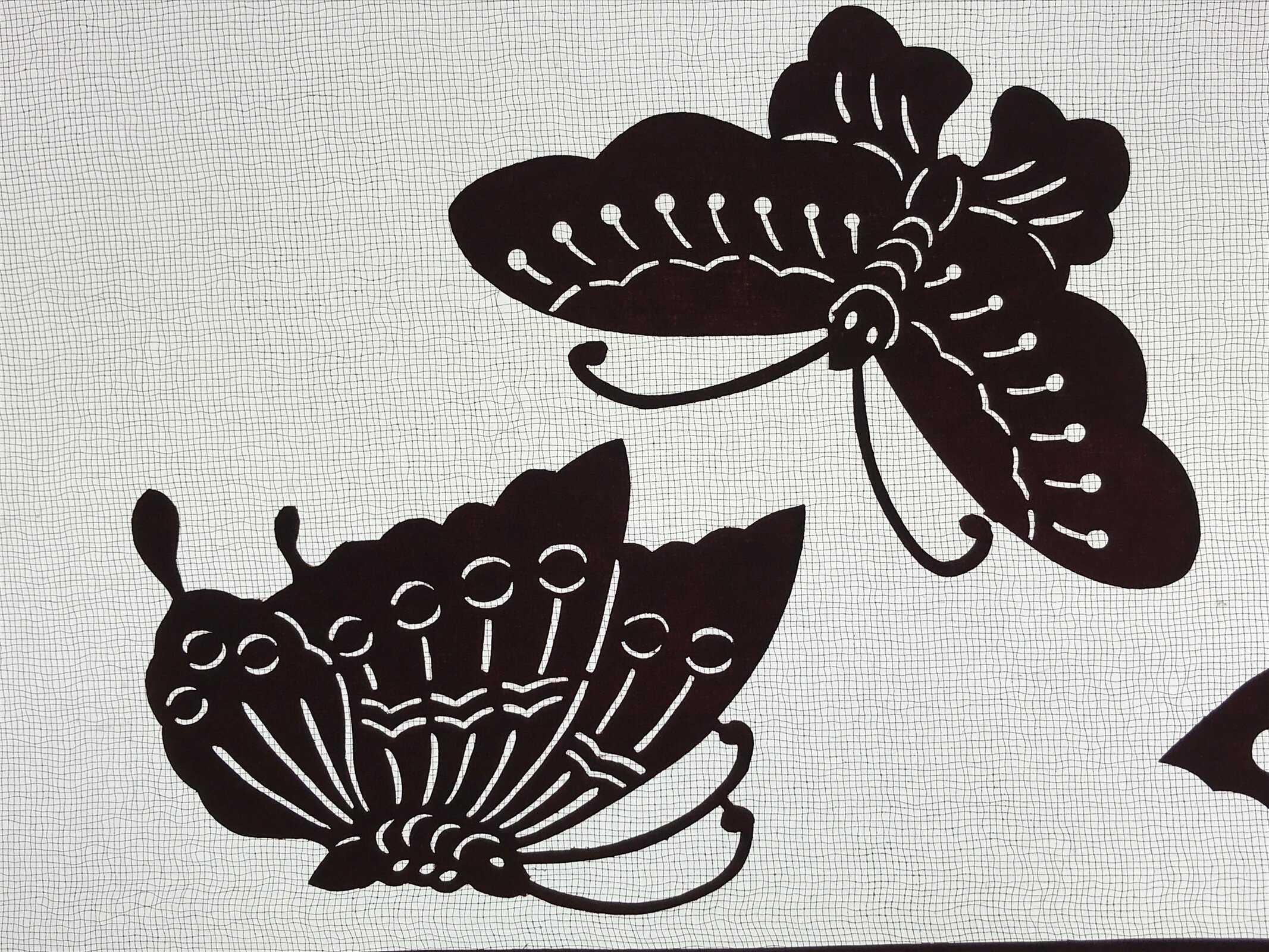 Using traditional mulberry paper, this katagami stencil with silk mesh backing is decorated with a kaleidoscope of fluttering butterflies.