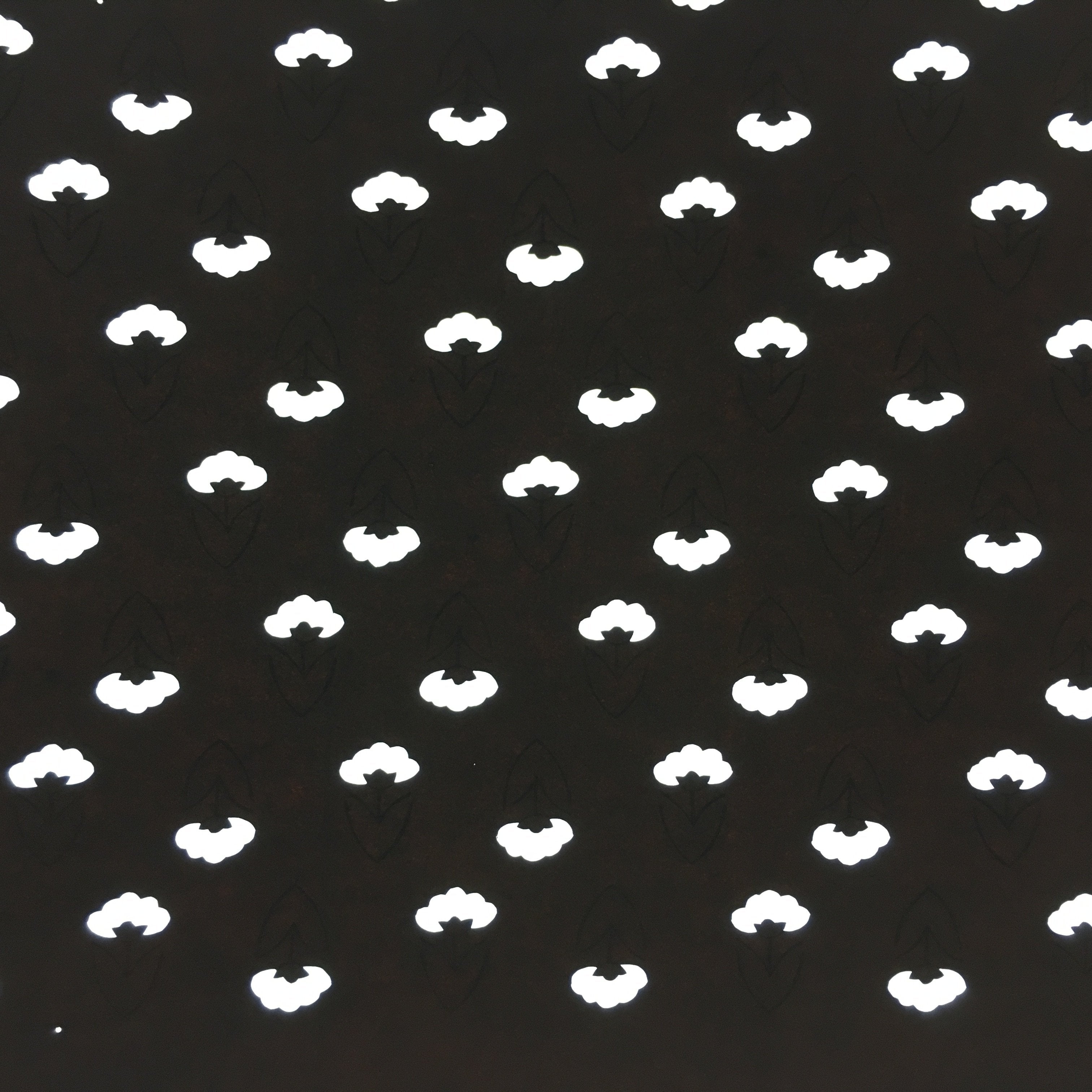 Japanese Katagami is a stencil pattern for dying textiles used for printing Kimonos. This antique Katagami was designed during the mid or late Edo period (1860) to early Meiji (1900) in Central Japan. It is made of two or more layers of handmade mulberry paper laminated together and waterproofed with persimmon tannin. Katagami printing uses a technique called resist dye where a paste is applied to the fabric with the katagami before dipping in ink. The open space on the katagami will be negative space in the printed design.