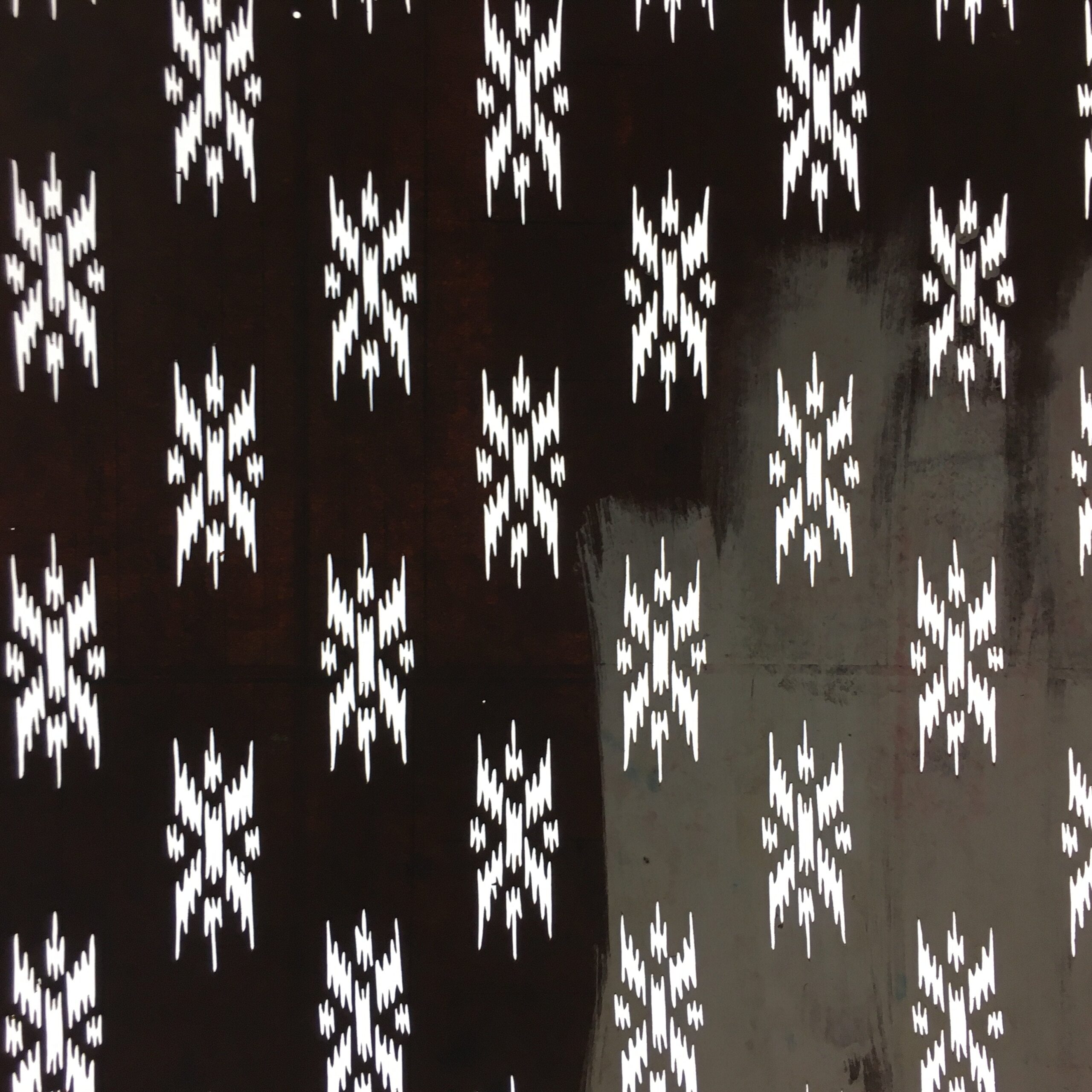 Japanese Katagami is a stencil pattern for dying textiles used for printing Kimonos. This antique Katagami was designed during the mid or late Edo period (1860) to early Meiji (1900) in Central Japan. It is made of two or more layers of handmade mulberry paper laminated together and waterproofed with persimmon tannin. Katagami printing uses a technique called resist dye where a paste is applied to the fabric with the katagami before dipping in ink. The open space on the katagami will be a negative space in the printed design.