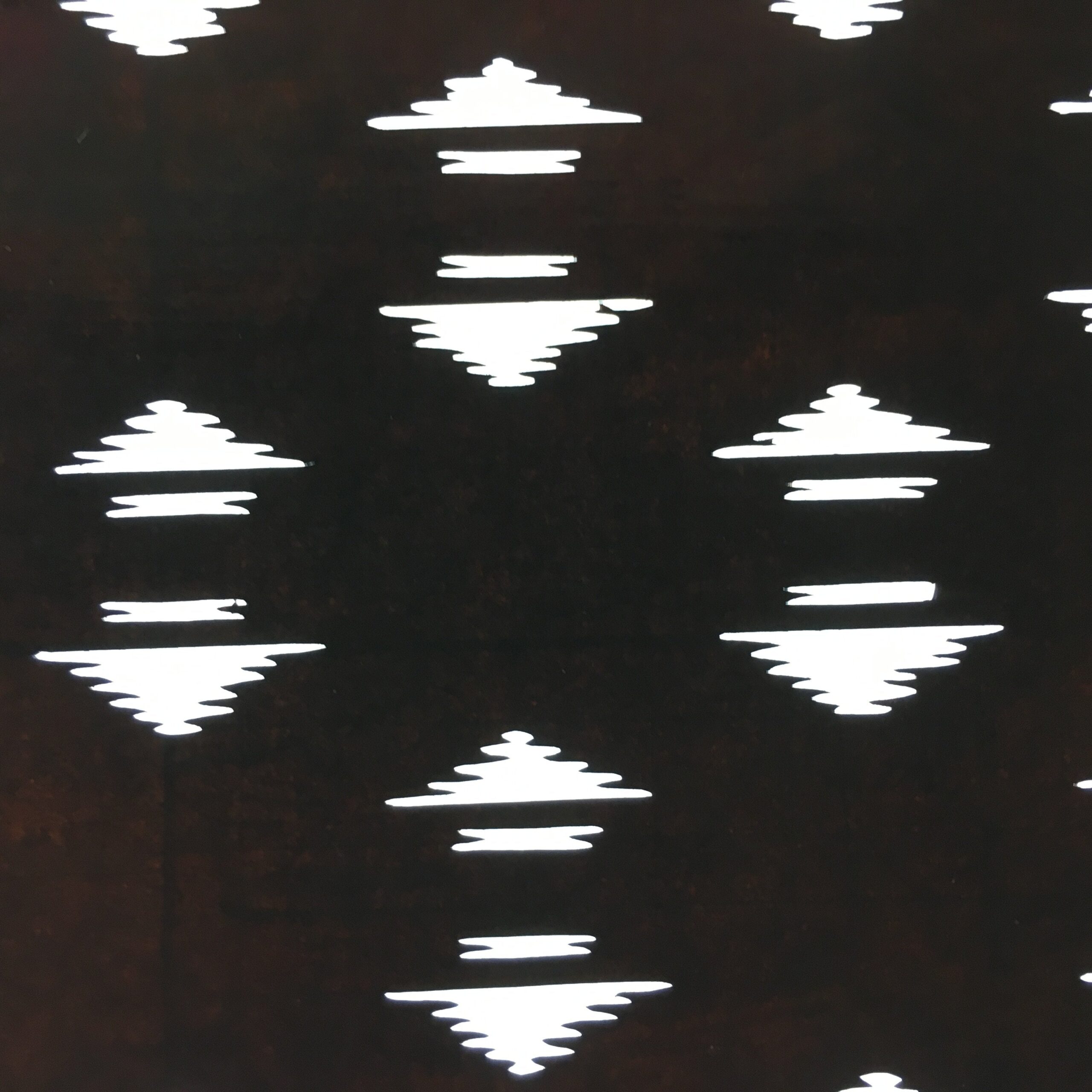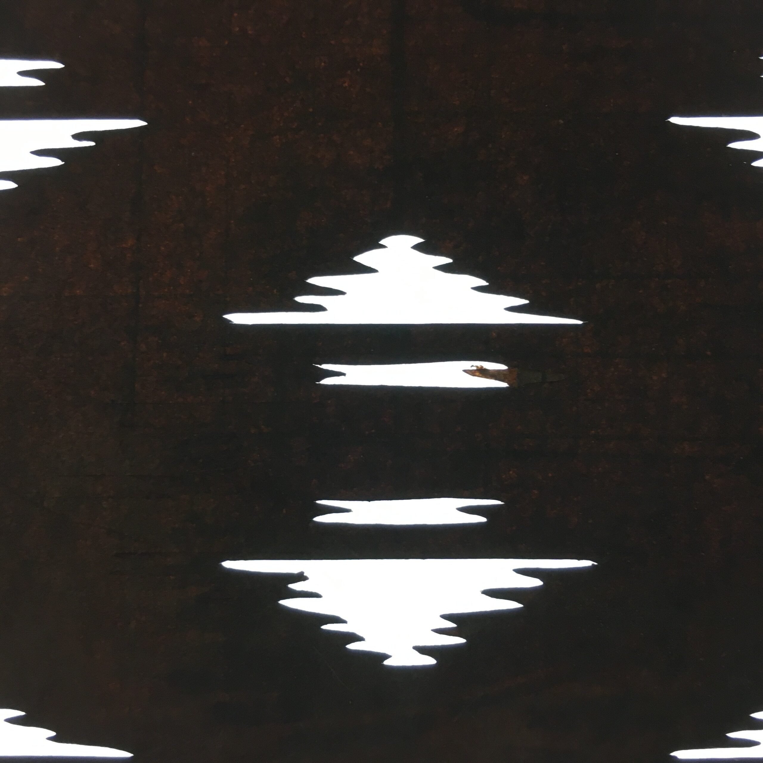Japanese Katagami is a stencil pattern for dying textiles used for printing Kimonos. This antique Katagami was designed during the mid or late Edo period (1860) to early Meiji (1900) in Central Japan. It is made of two or more layers of handmade mulberry paper laminated together and waterproofed with persimmon tannin. Katagami printing uses a technique called resist dye where a paste is applied to the fabric with the katagami before dipping in ink. The open space on the katagami will be a negative space in the printed design.