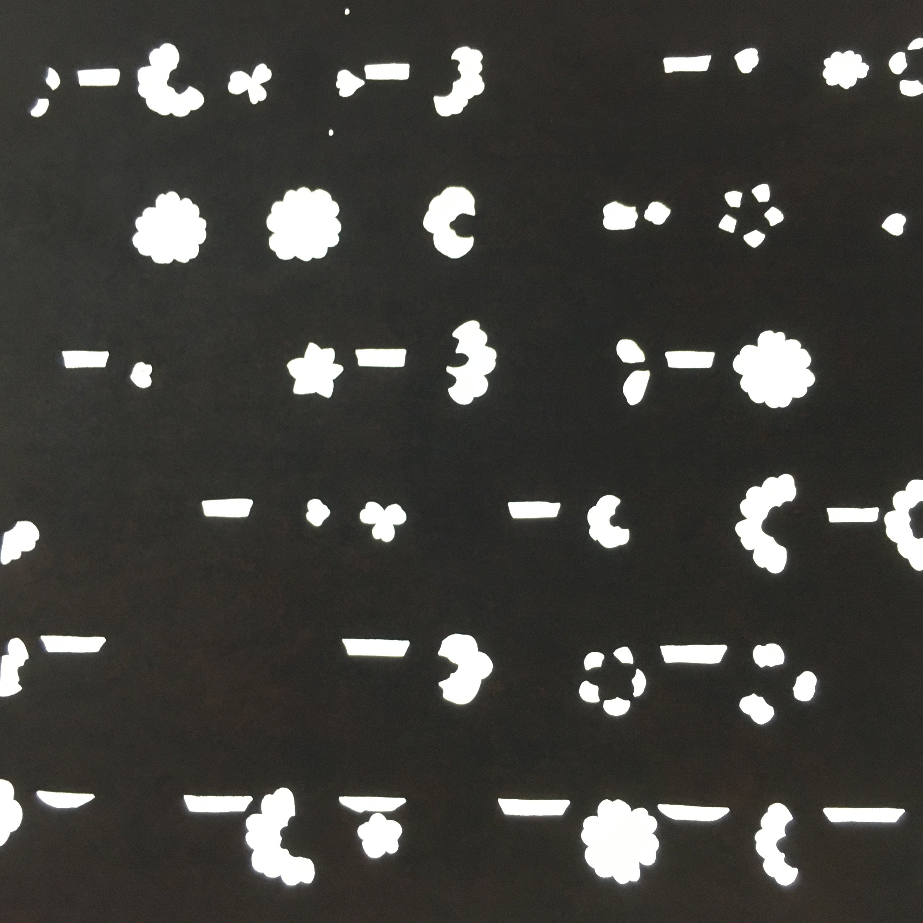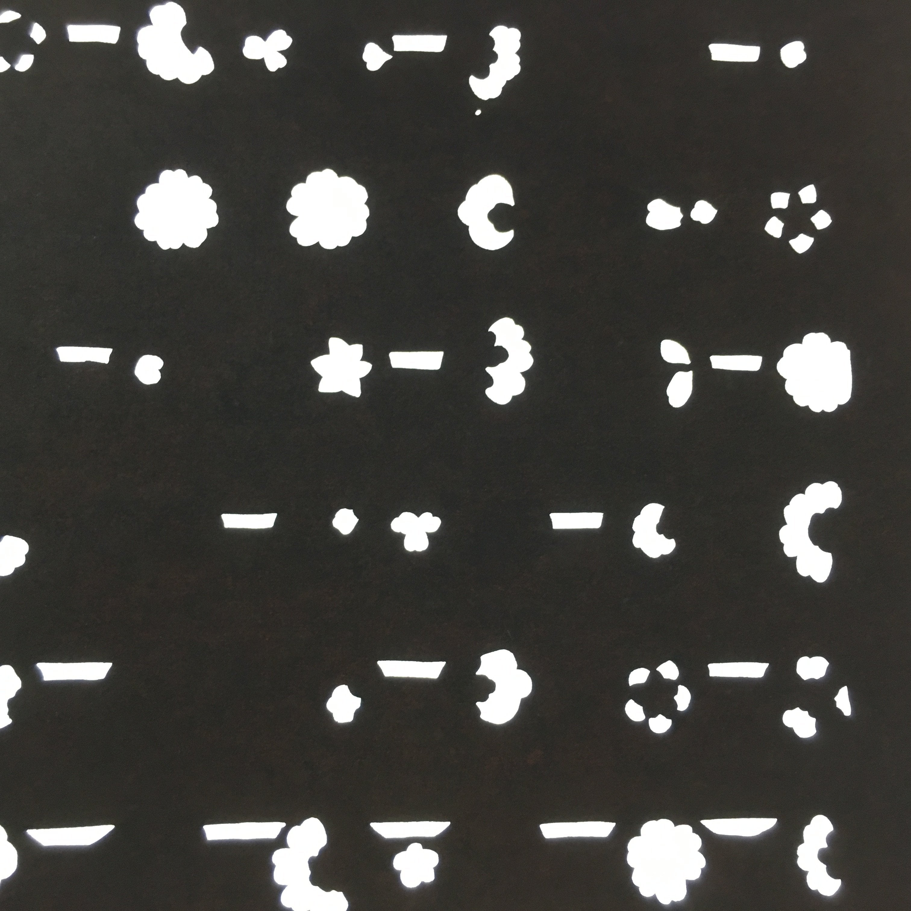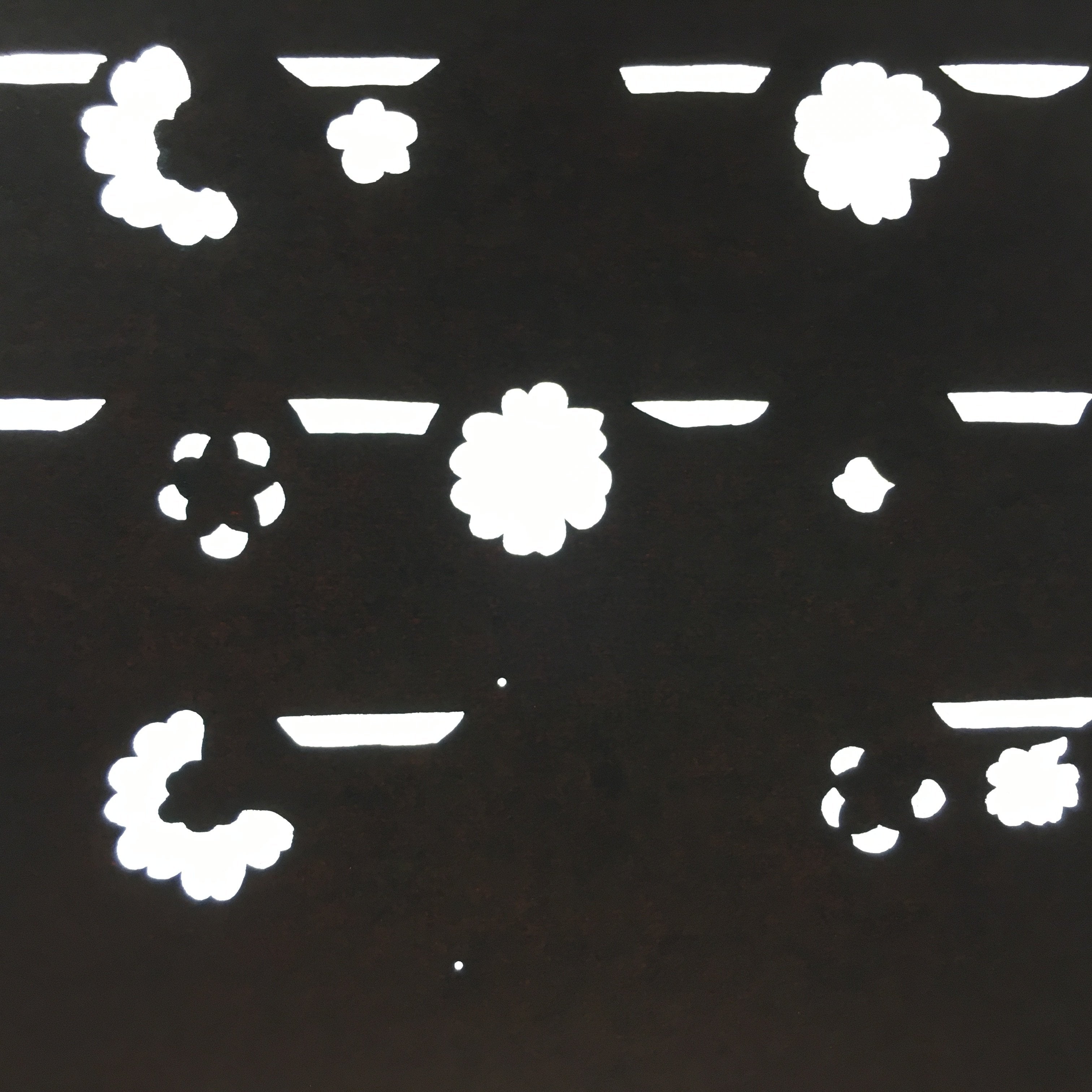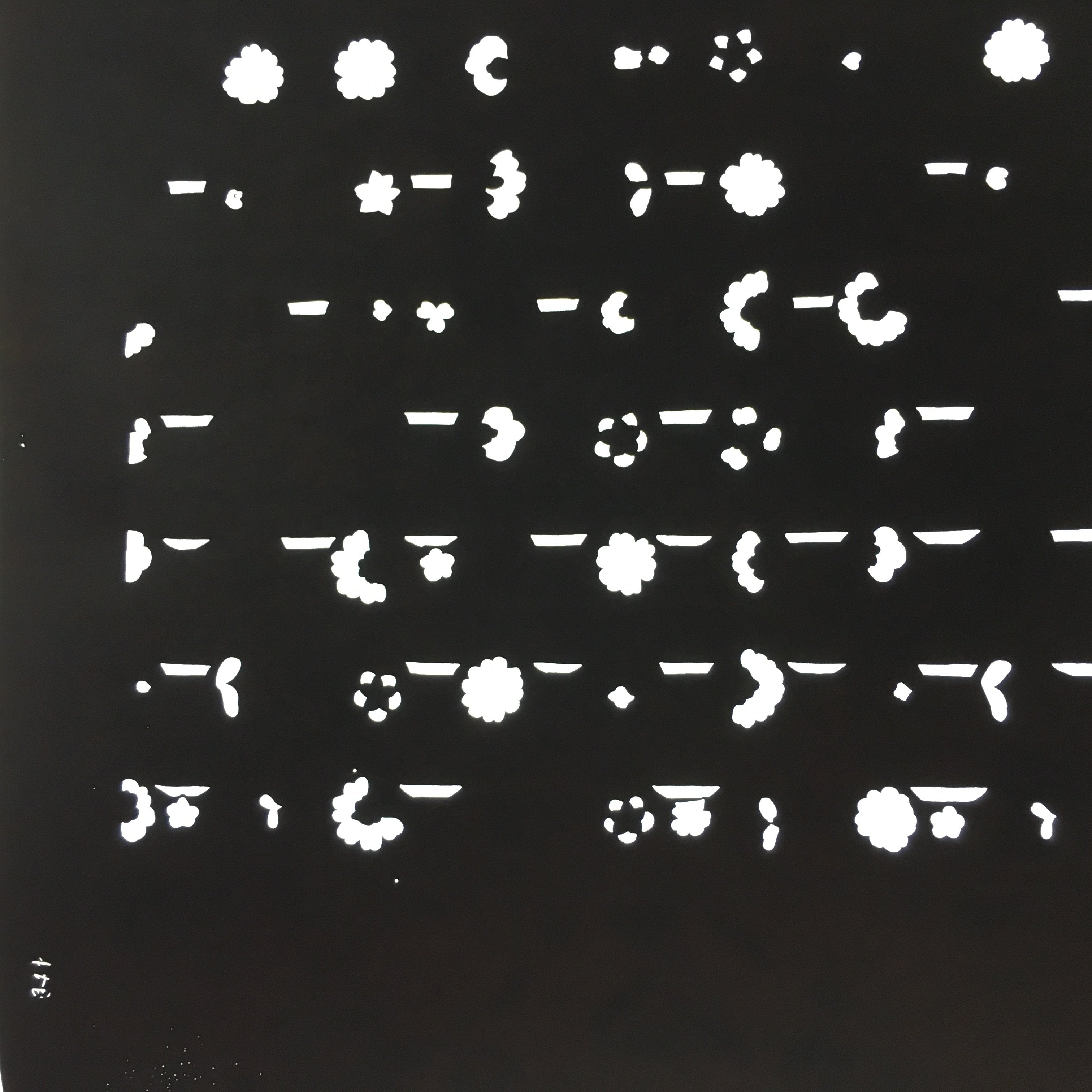 Japanese Katagami is a stencil pattern for dying textiles used for printing Kimonos. This antique Katagami was designed during the mid or late Edo period (1860) to early Meiji (1900) in Central Japan. It is made of two or more layers of handmade mulberry paper laminated together and waterproofed with persimmon tannin. Katagami printing uses a technique called resist dye where a paste is applied to the fabric with the katagami before dipping in ink. The open space on the katagami will be negative space in the printed design.