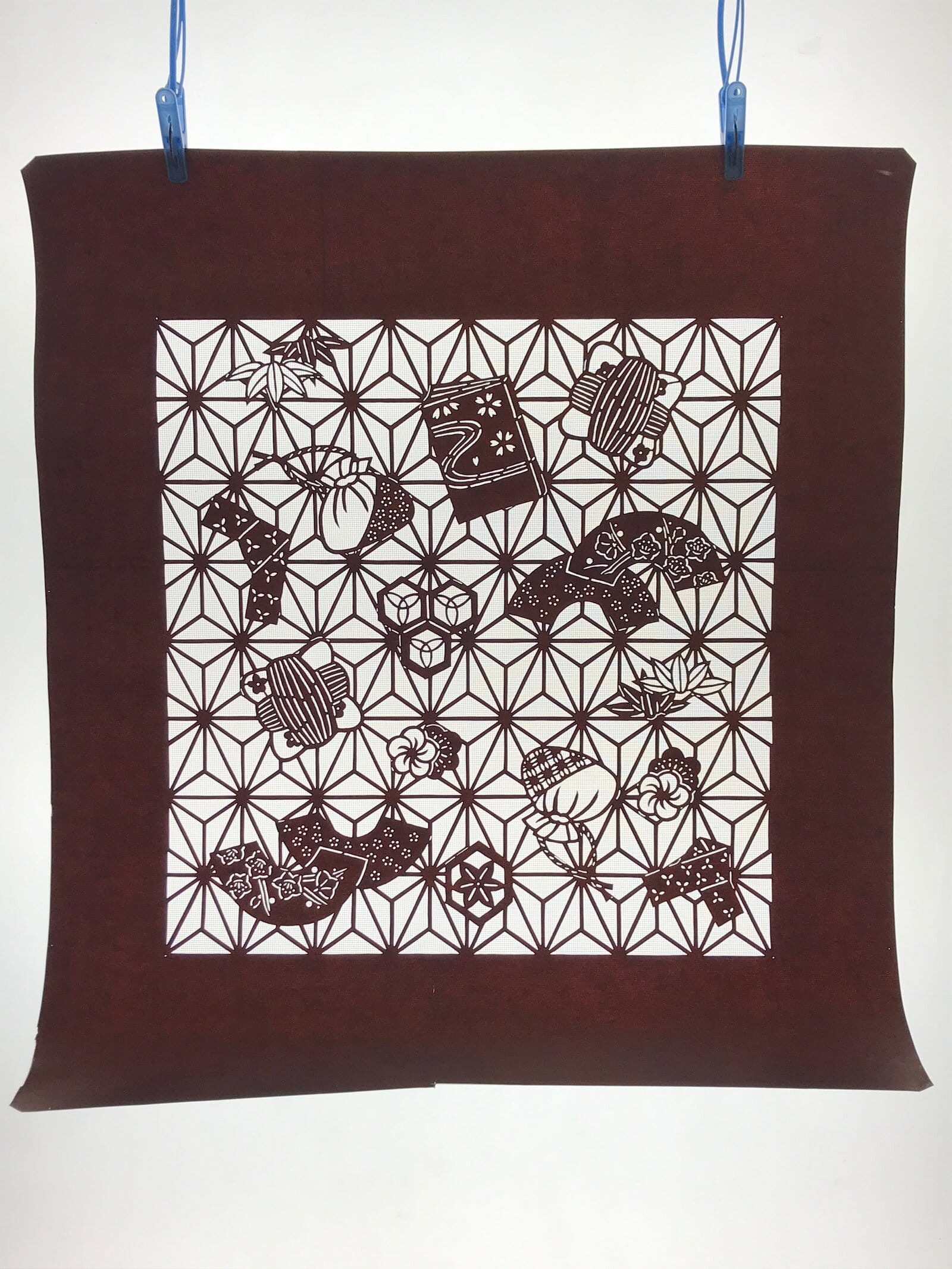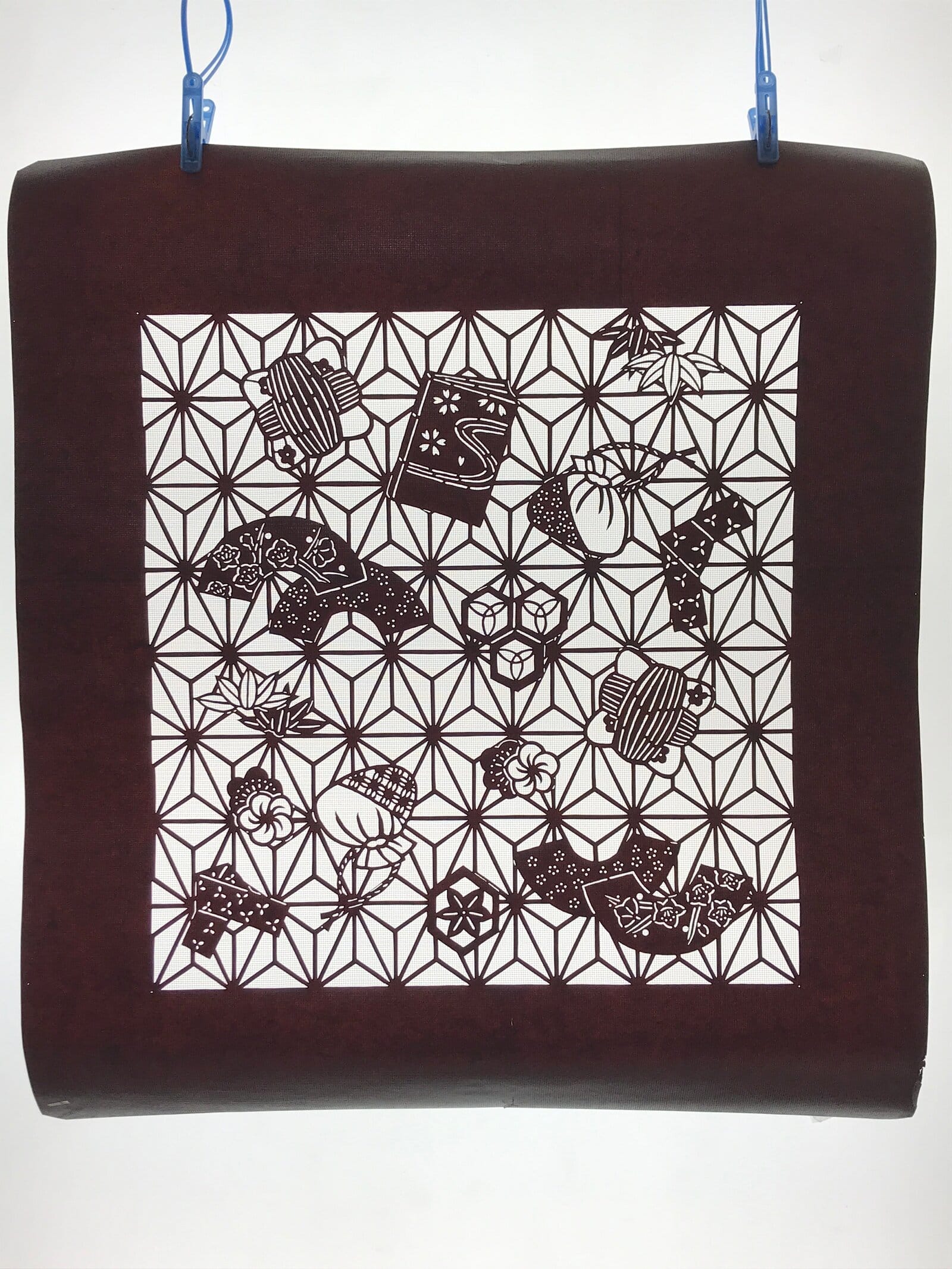 Japanese Katagami is a stencil pattern for dyeing textiles used for printing designs and patterns on kimono and other fabric items.