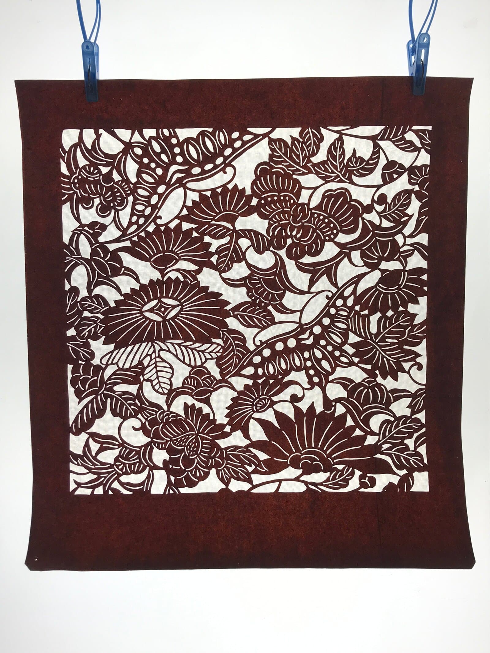 Japanese Katagami is a stencil pattern for dyeing textiles used for printing designs and patterns on kimono and other fabric items.