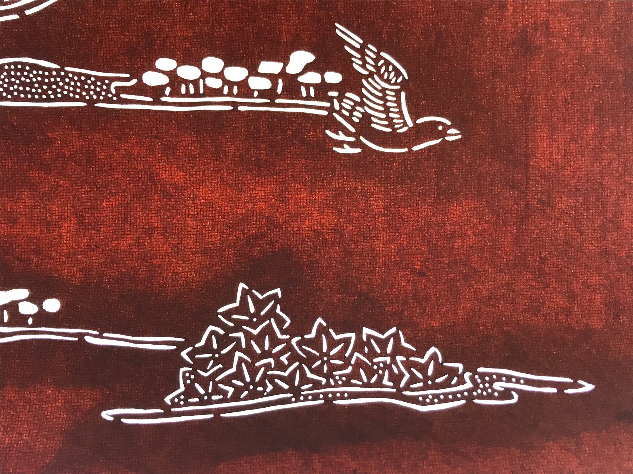 January 20, 2026Antique Japanese Katagami Kimono Paper Stencil Mountain Village Bird 4Y485