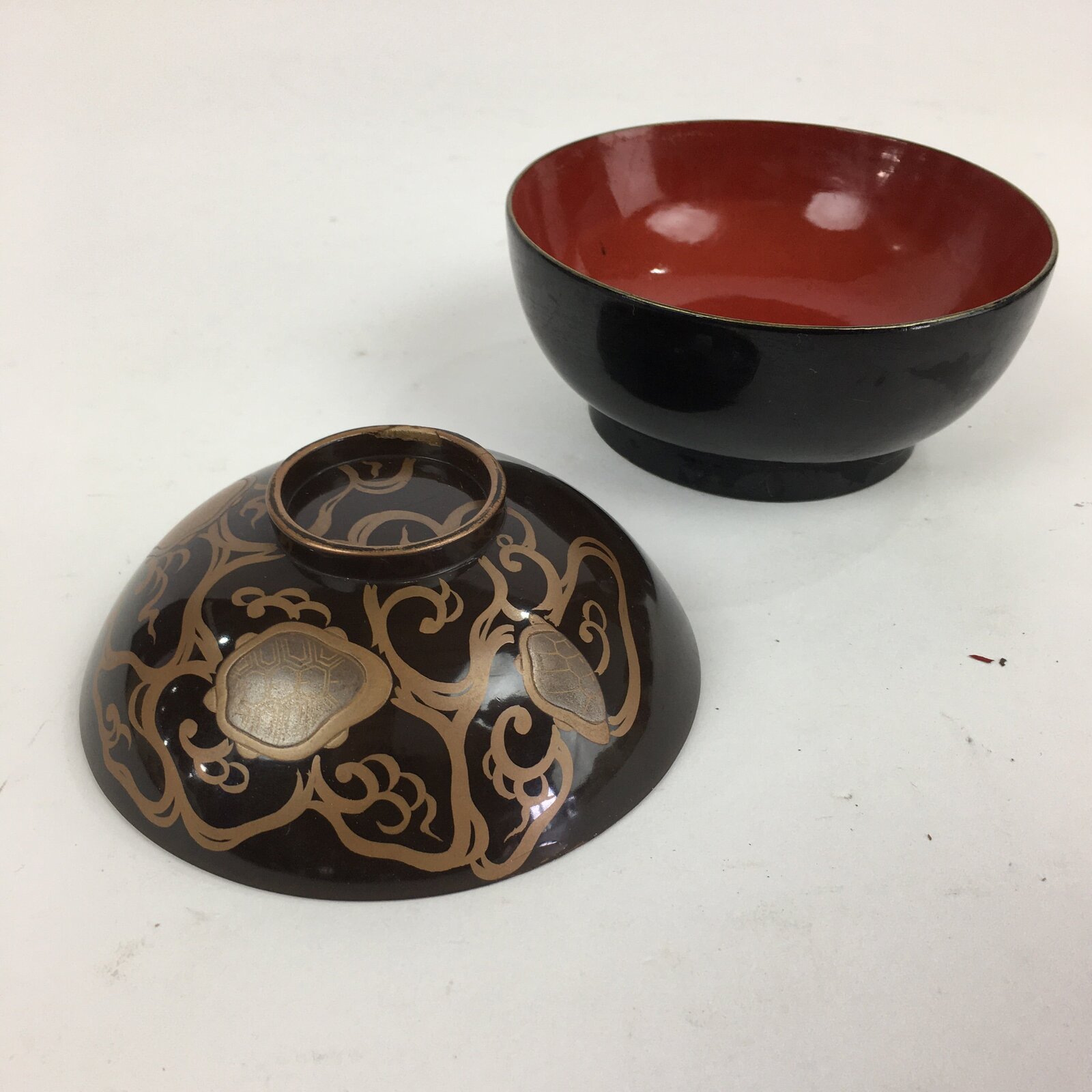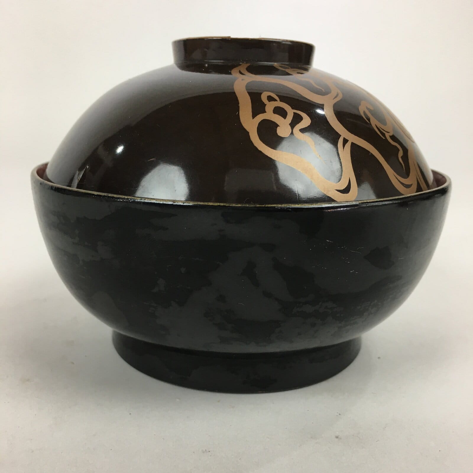Antique Japanese Lacquerware Lidded Soup Bowl