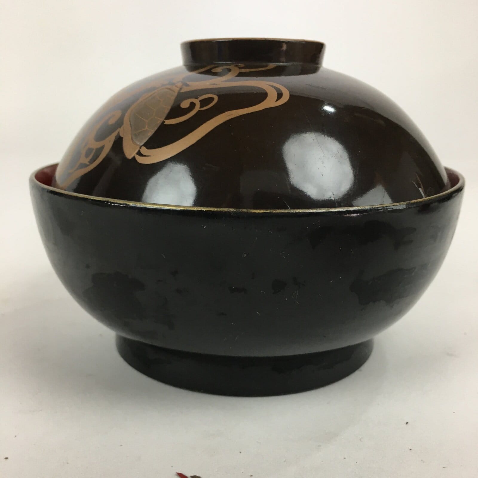 Antique Japanese Lacquerware Lidded Bowl Maki-e Gold Owan Soup Bowl UR654