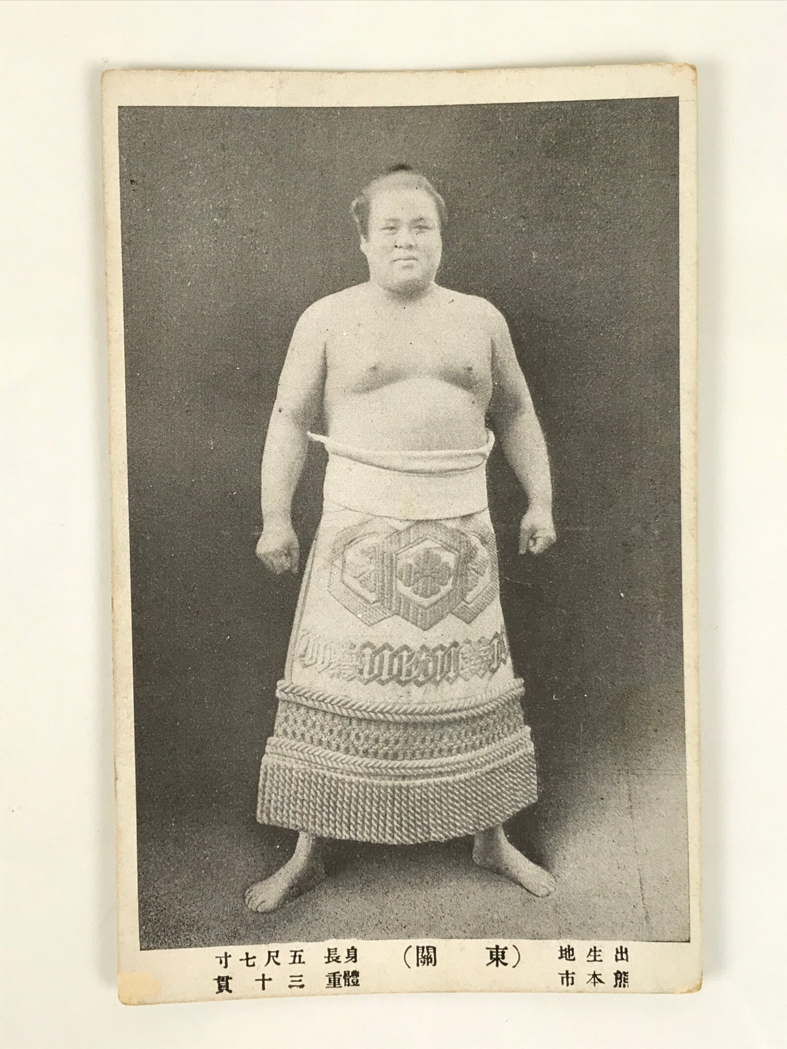 Antique Japanese Postcard Sumo Wrestler Tachihikari Den’emon Black White PC101