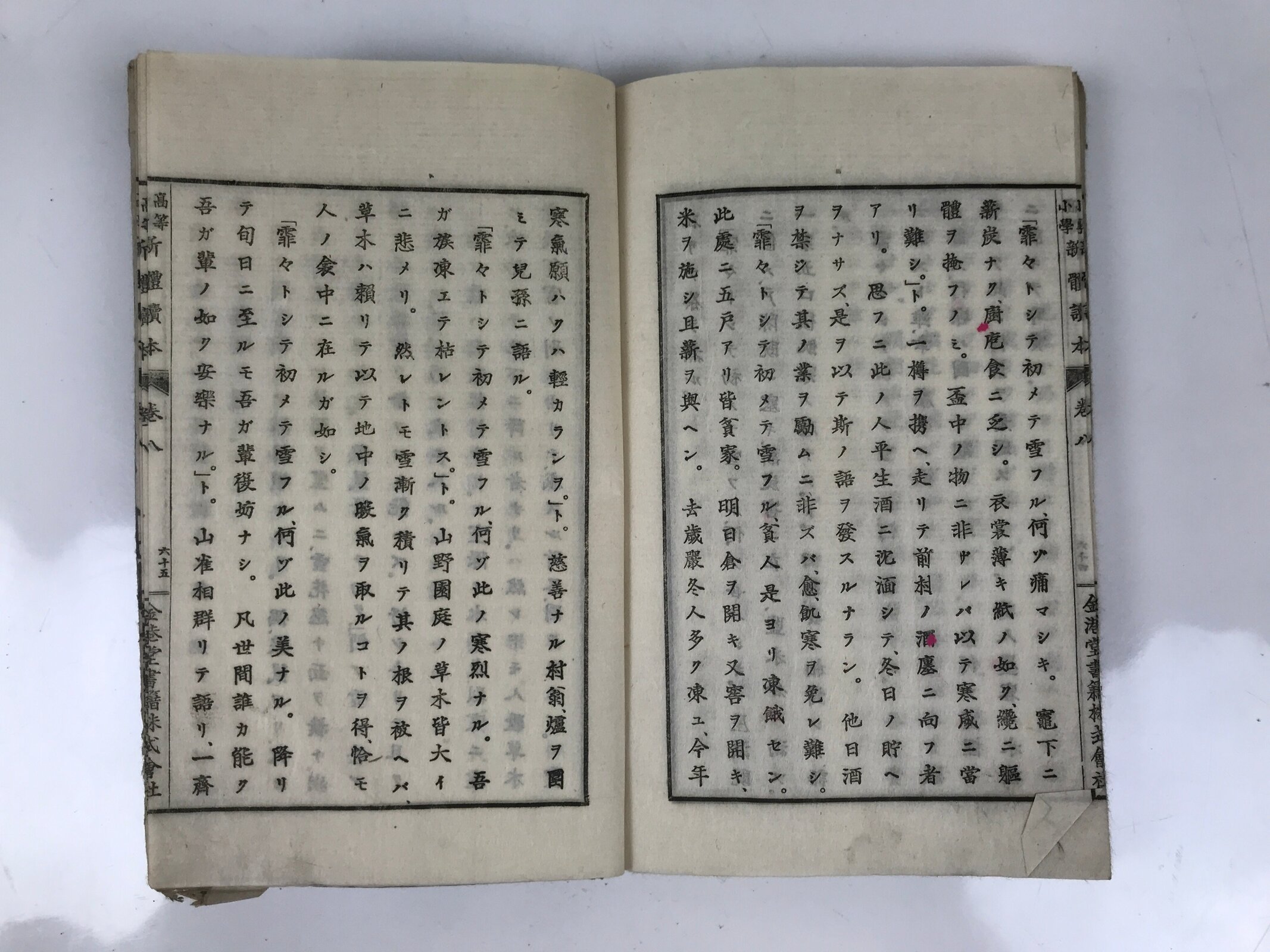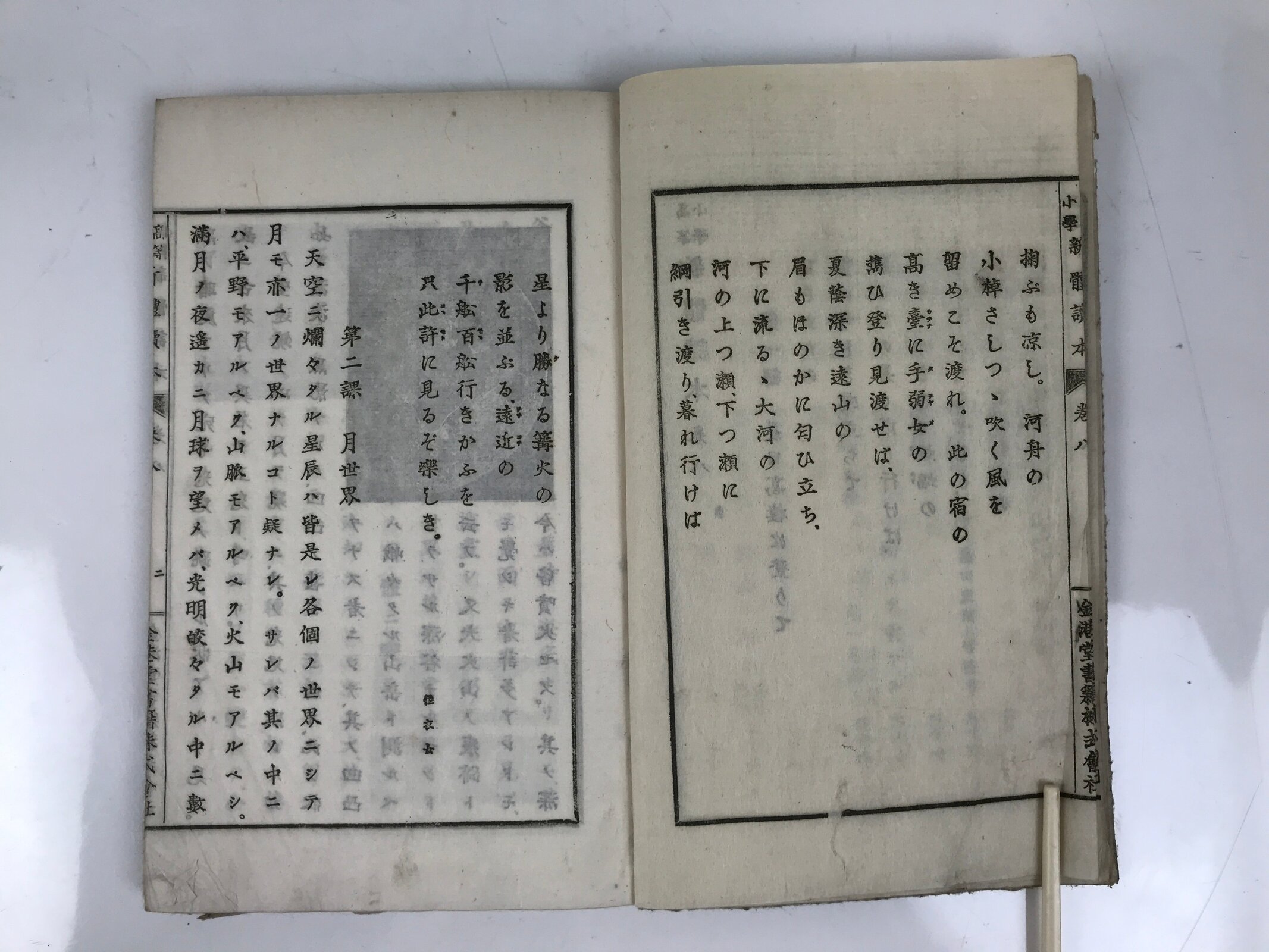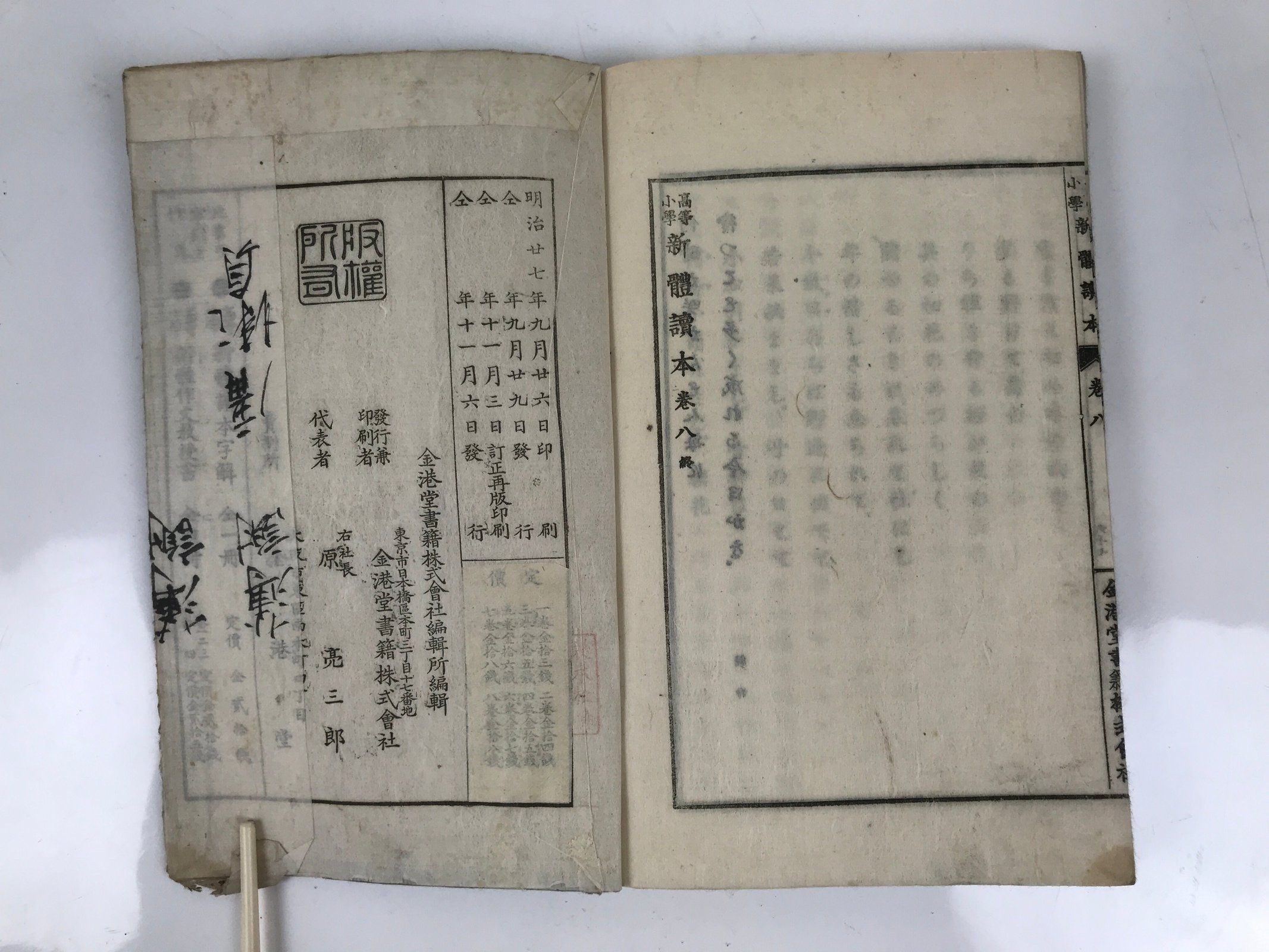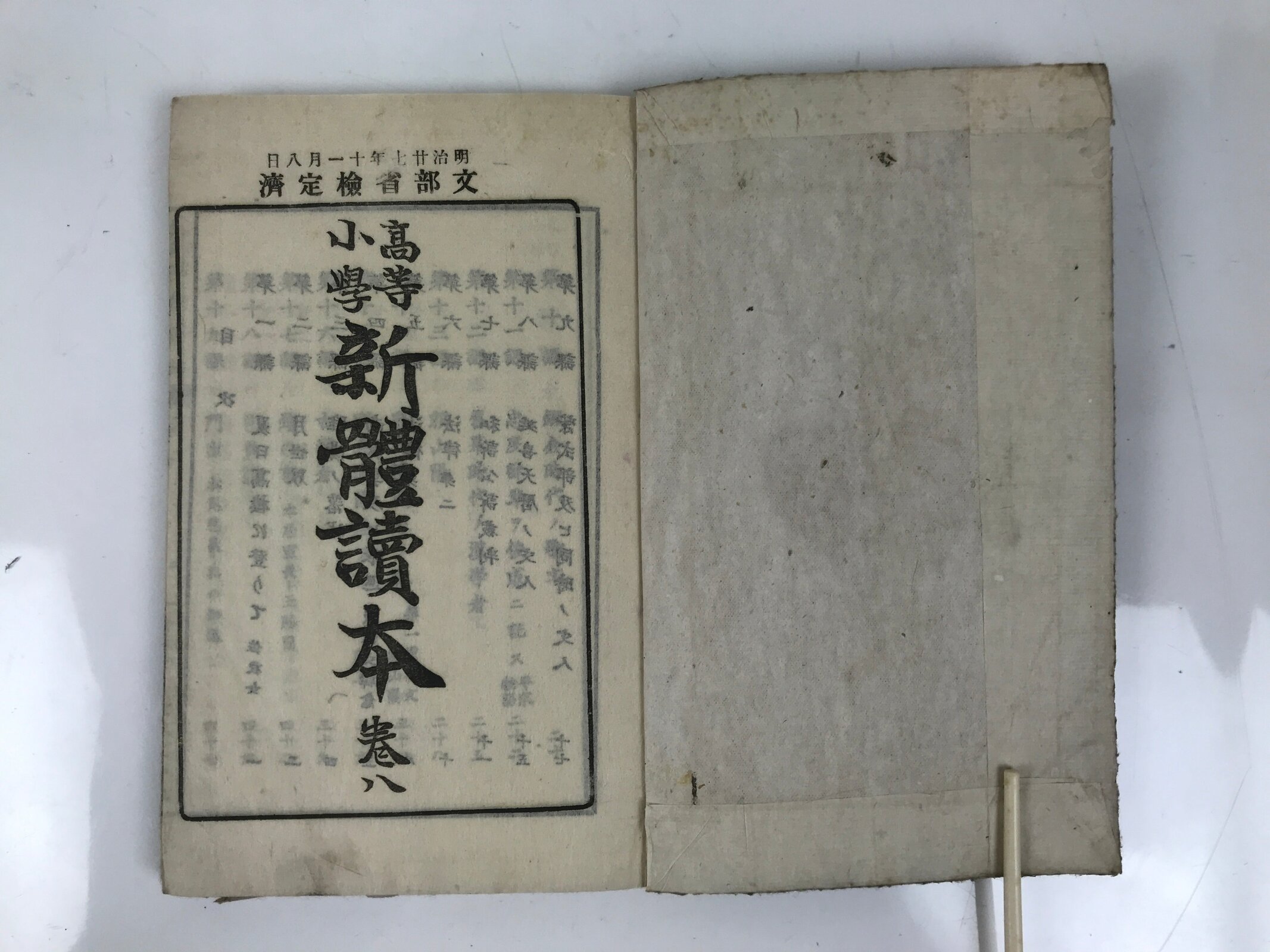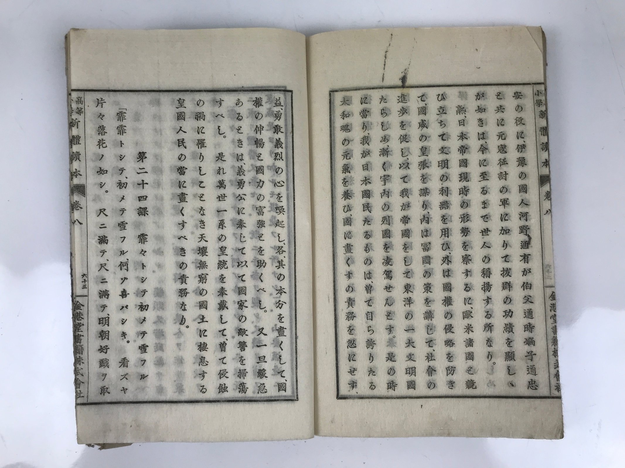 - Title on the cover: 高等小学 新體讀本 巻八 New Comprehensive Reading for School Upper Grade Volume 8