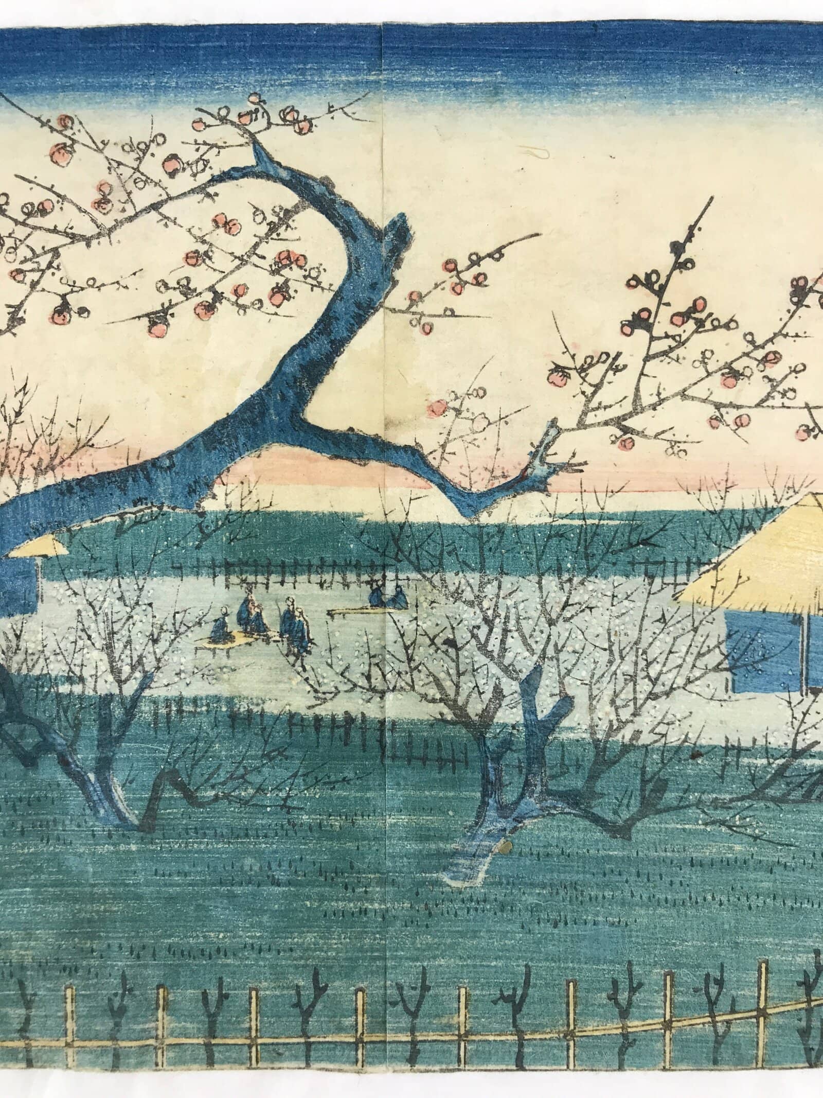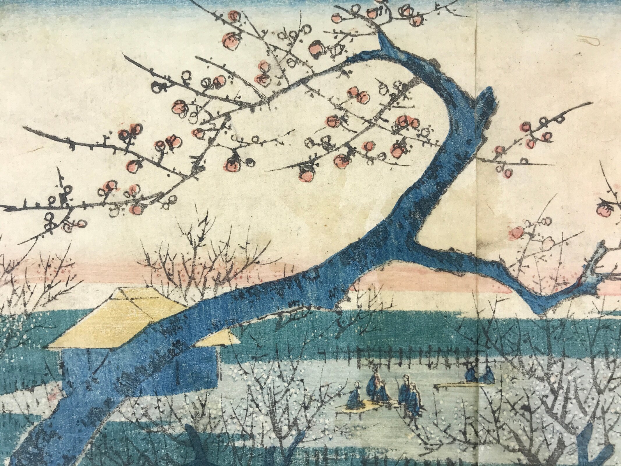 January 21, 2026Antique c1860 Japanese Ukiyoe Woodblock Print Utagawa Hiroshige II Plum FL225