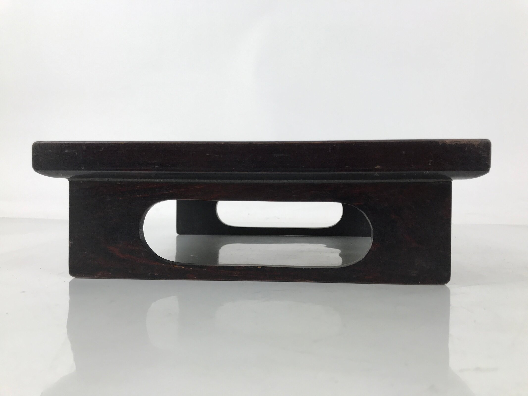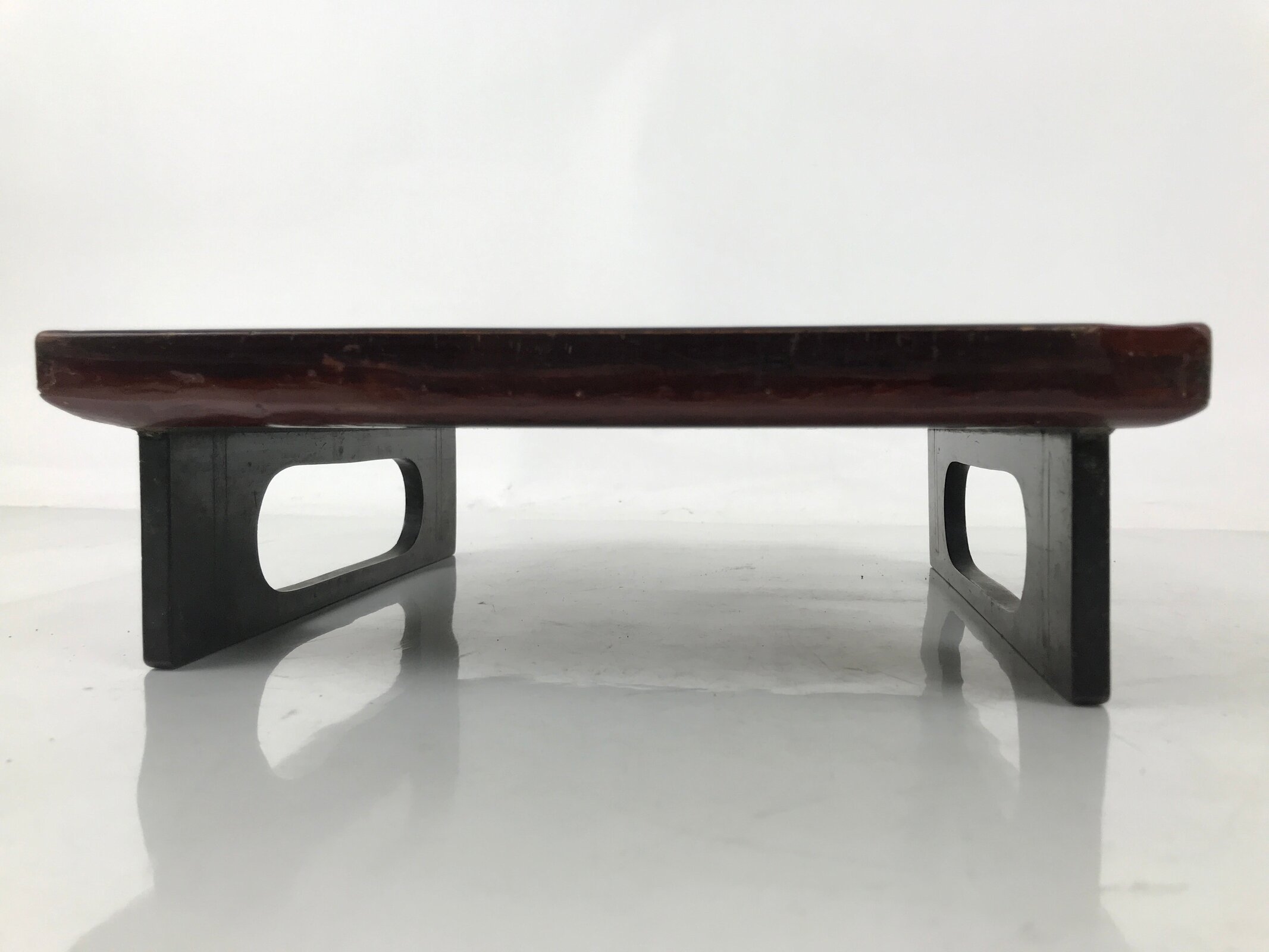 Antique Japanese Wooden Lacquered Low Table Brown Serving Tray Ozen Square L494
