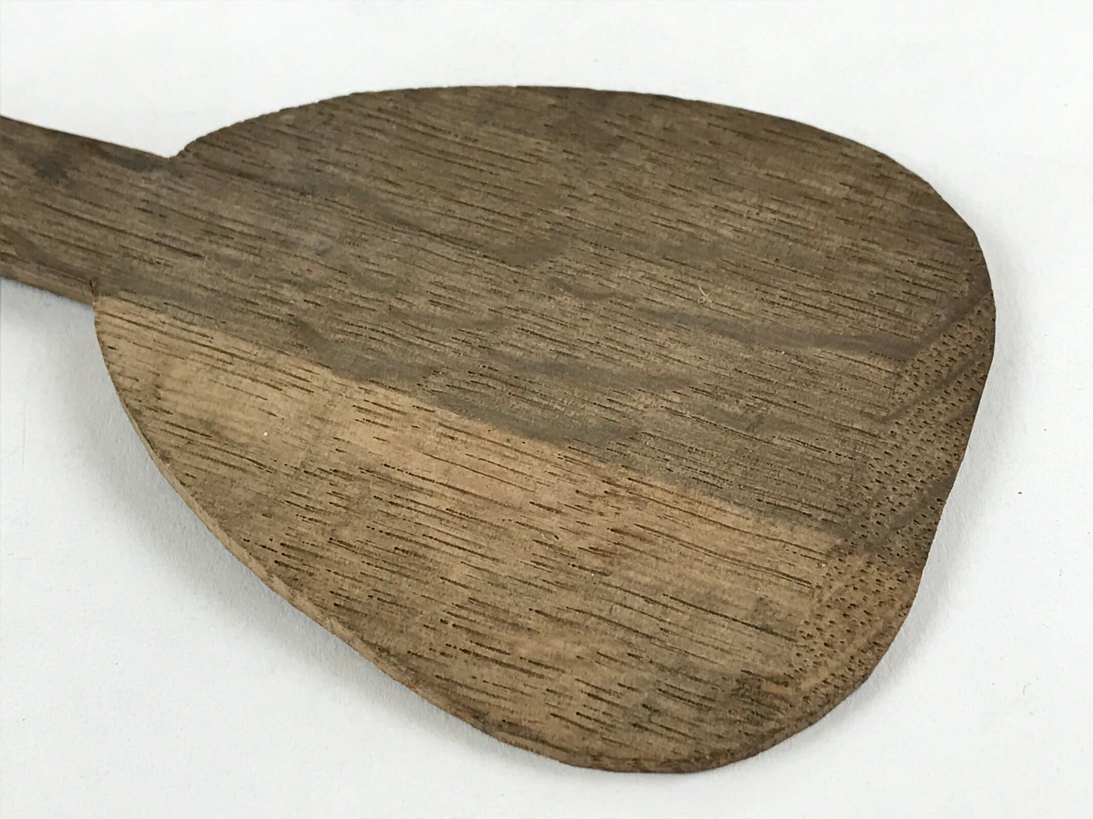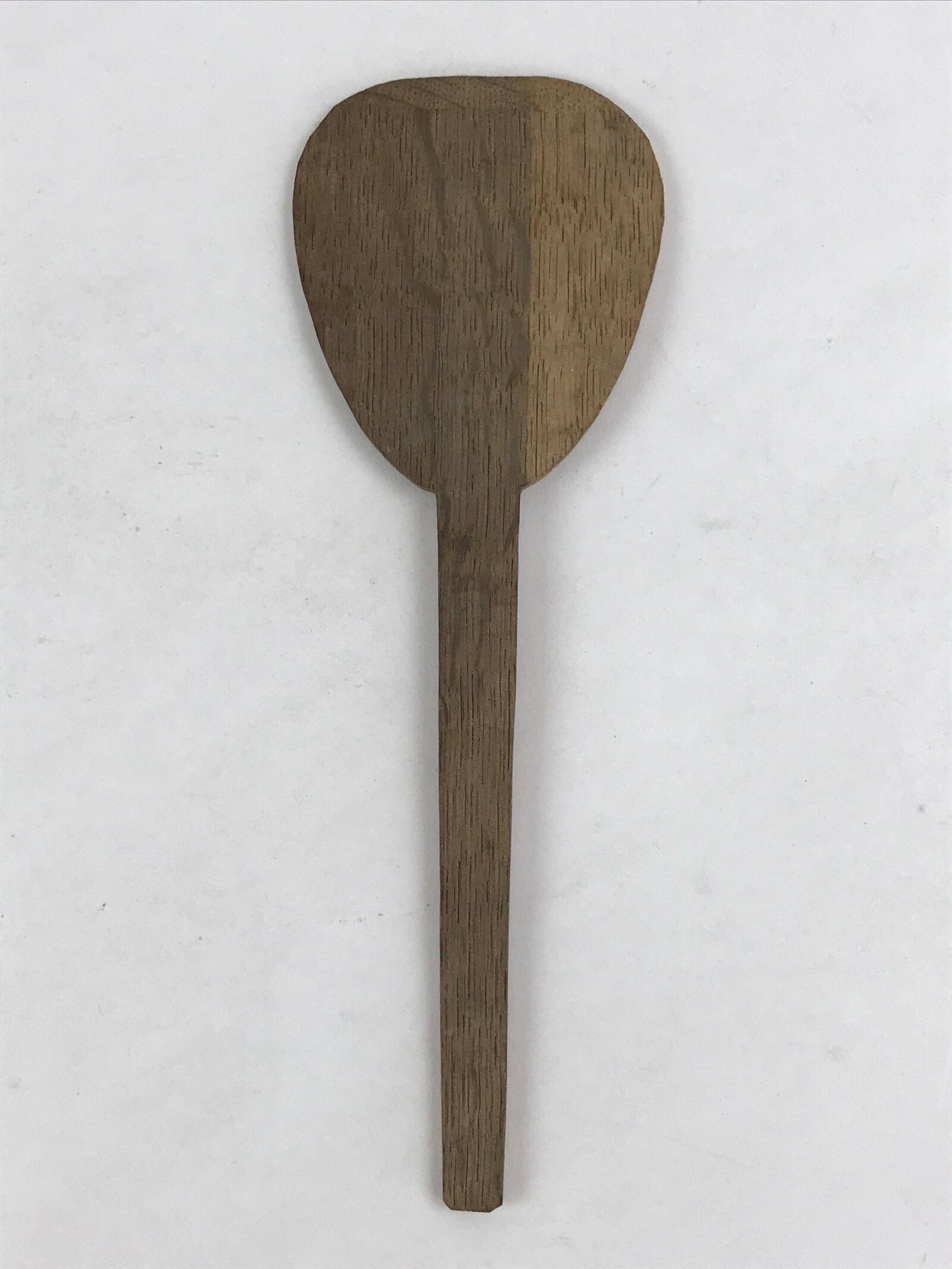 This is an antique Japanese rice scoop or spatula. I think it was probably used as a Japanese sweets confectionery tool or for cooking. It is shaped like a rice scoop cut out of a single piece of wood board and is not coated with varnish.
