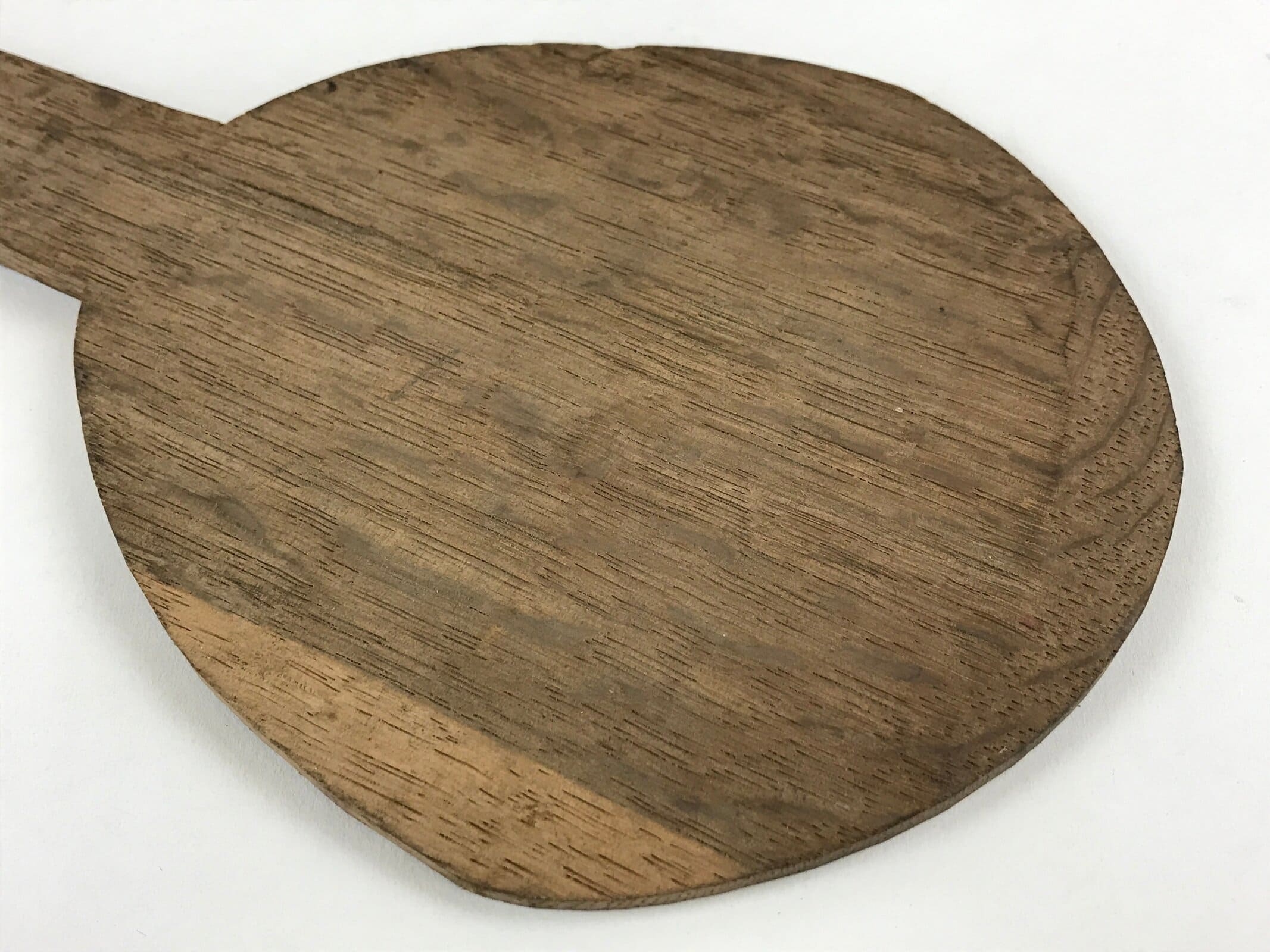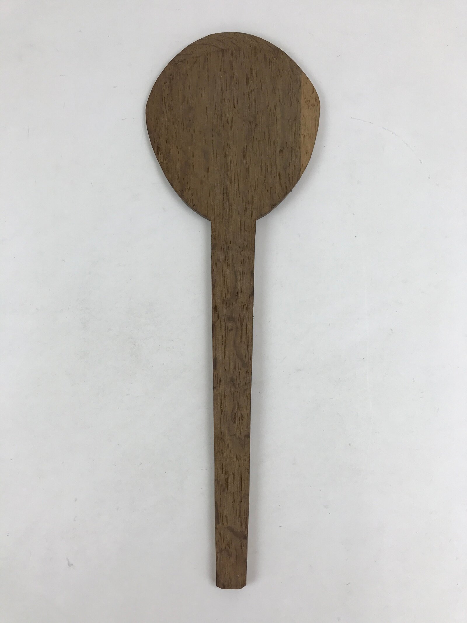 This is an antique Japanese rice scoop or spatula. I think it was probably used as a Japanese sweets confectionery tool or for cooking. It is shaped like a rice scoop cut out of a single piece of wood board and is not coated with varnish.