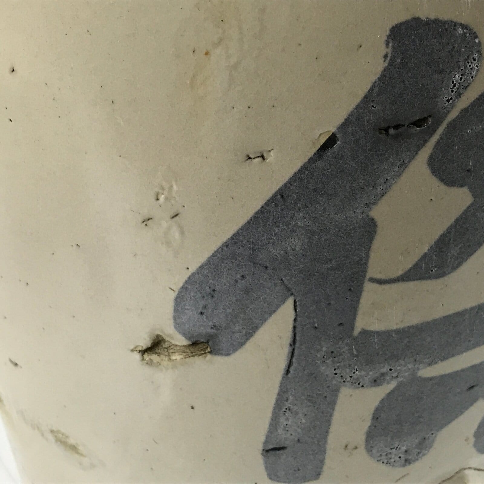 Antique C1900 Japanese Ceramic Sake Bottle Kayoi-Tokkuri Black Kanji Gray TS666