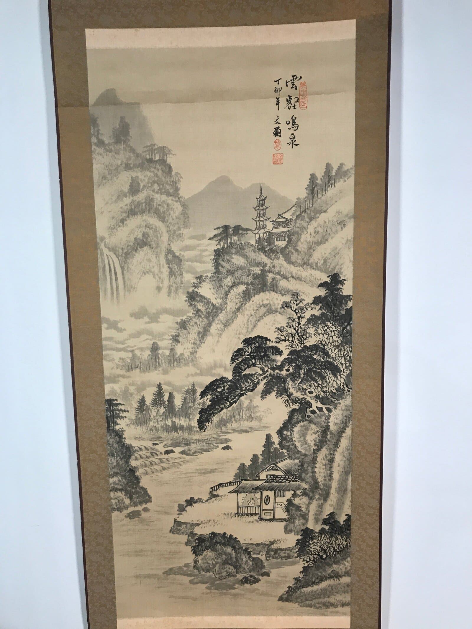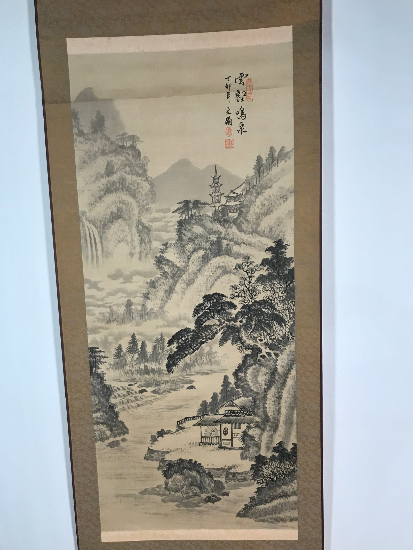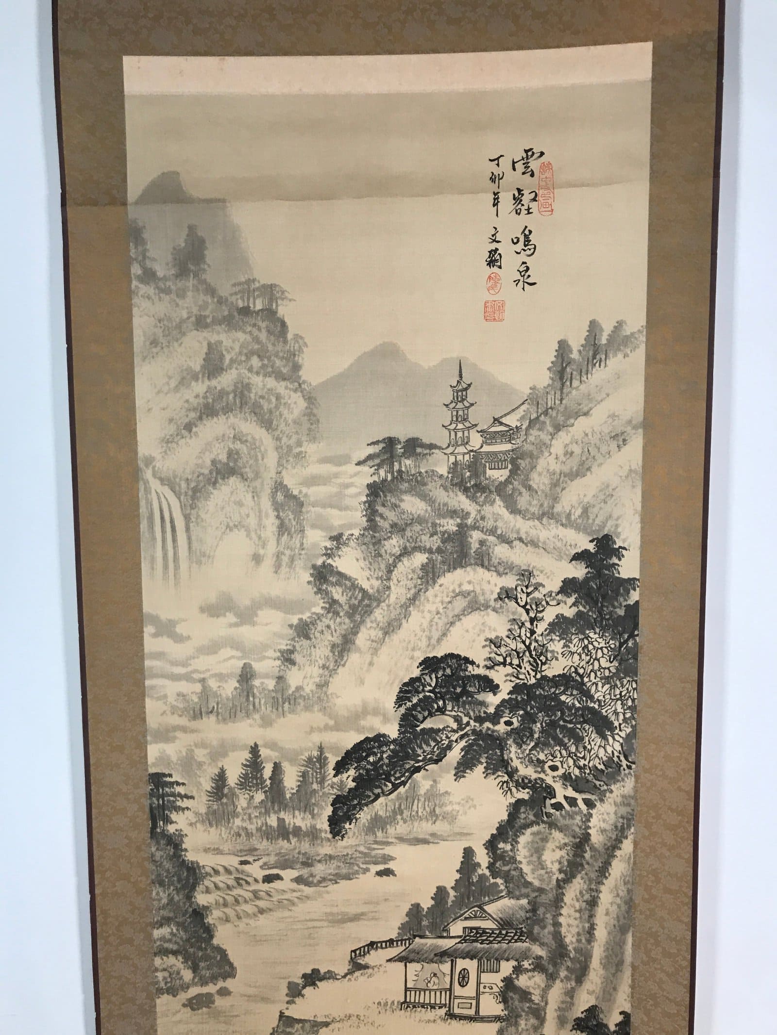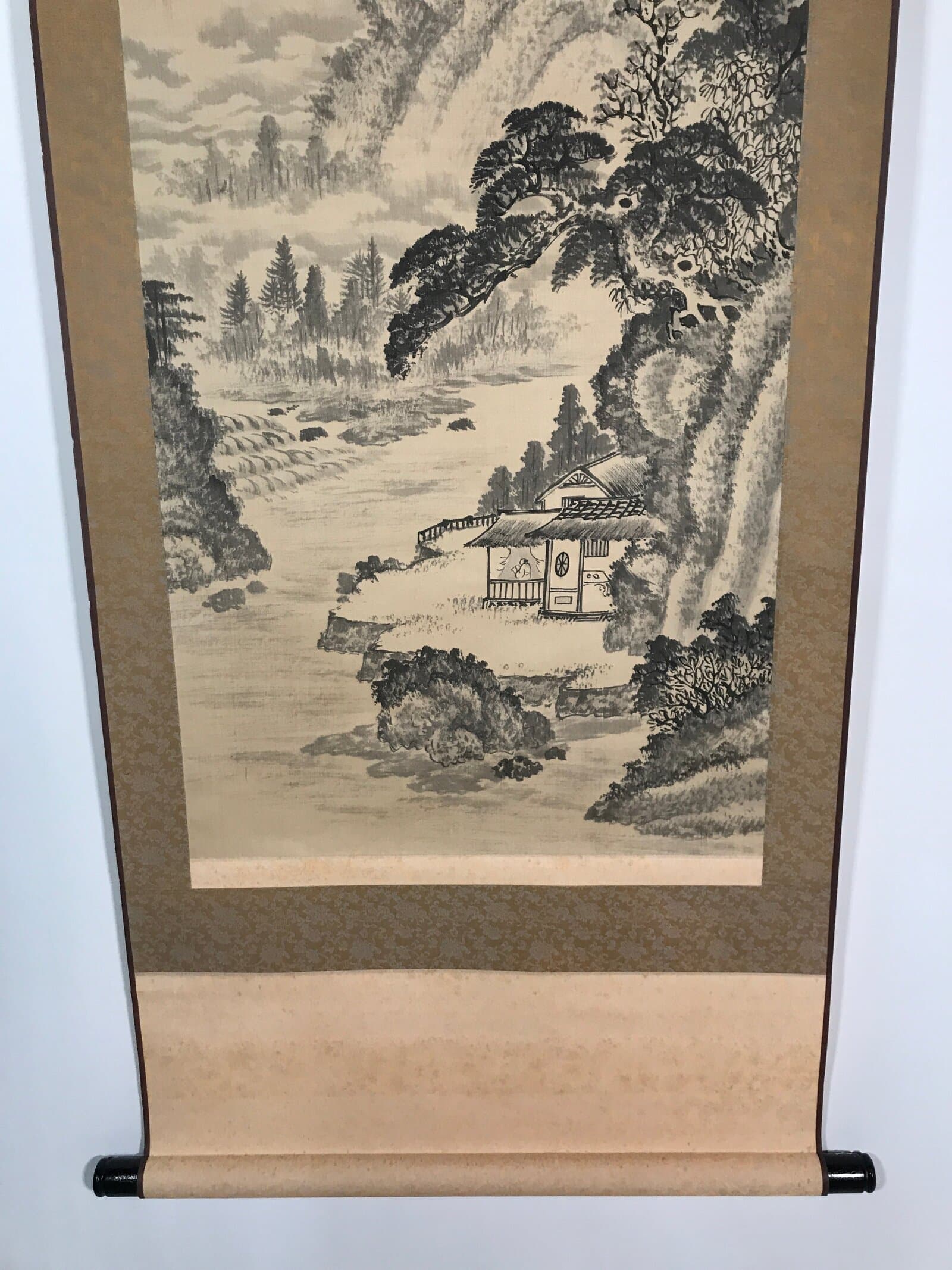 January 24, 2026Taiwanese Hanging Scroll Vtg Kakejiku Cho Bunkan Sansui Mountain River KJ55