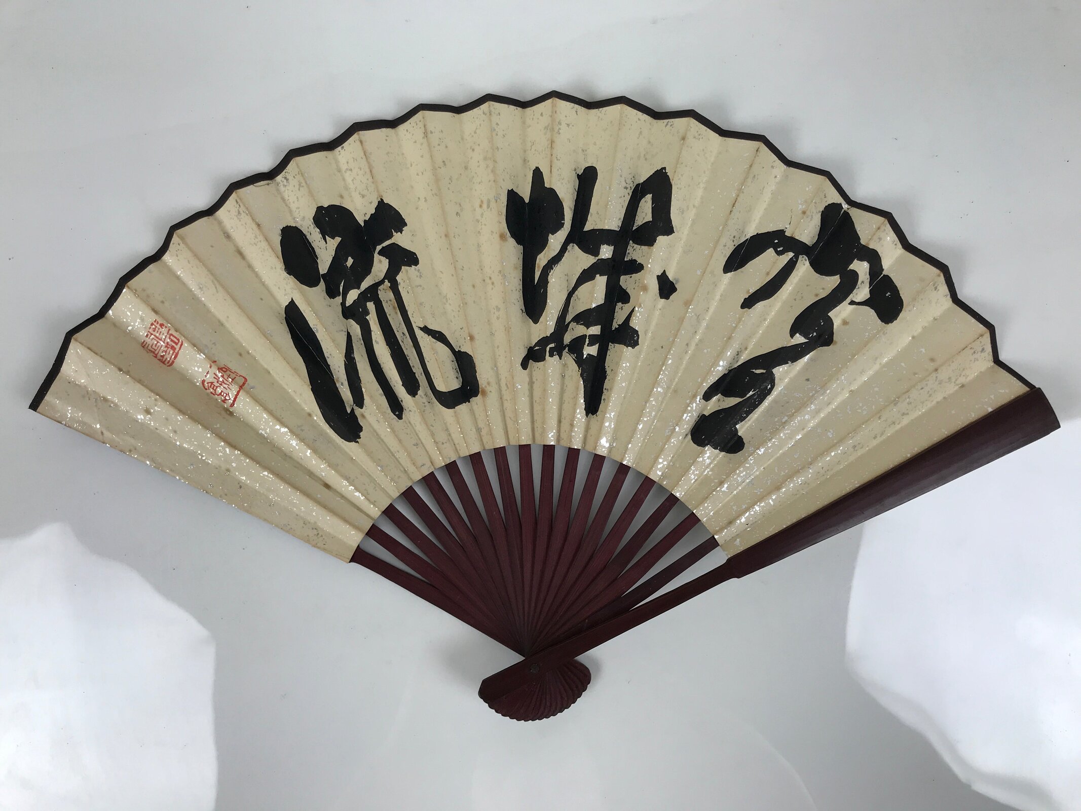 Japanese Paper Folding Fan Sensu Vtg Bamboo Frame Calligraphy Black 4D939