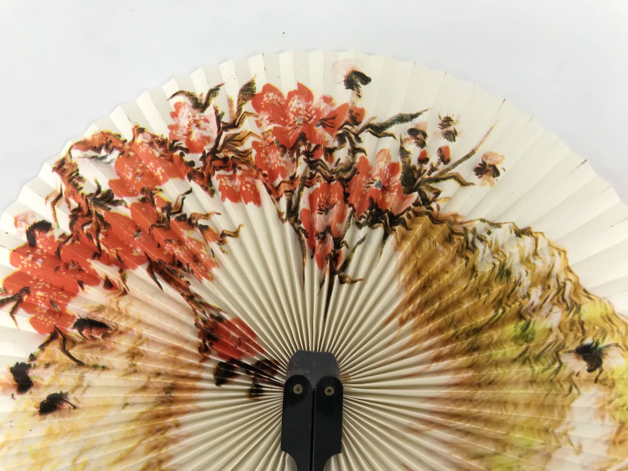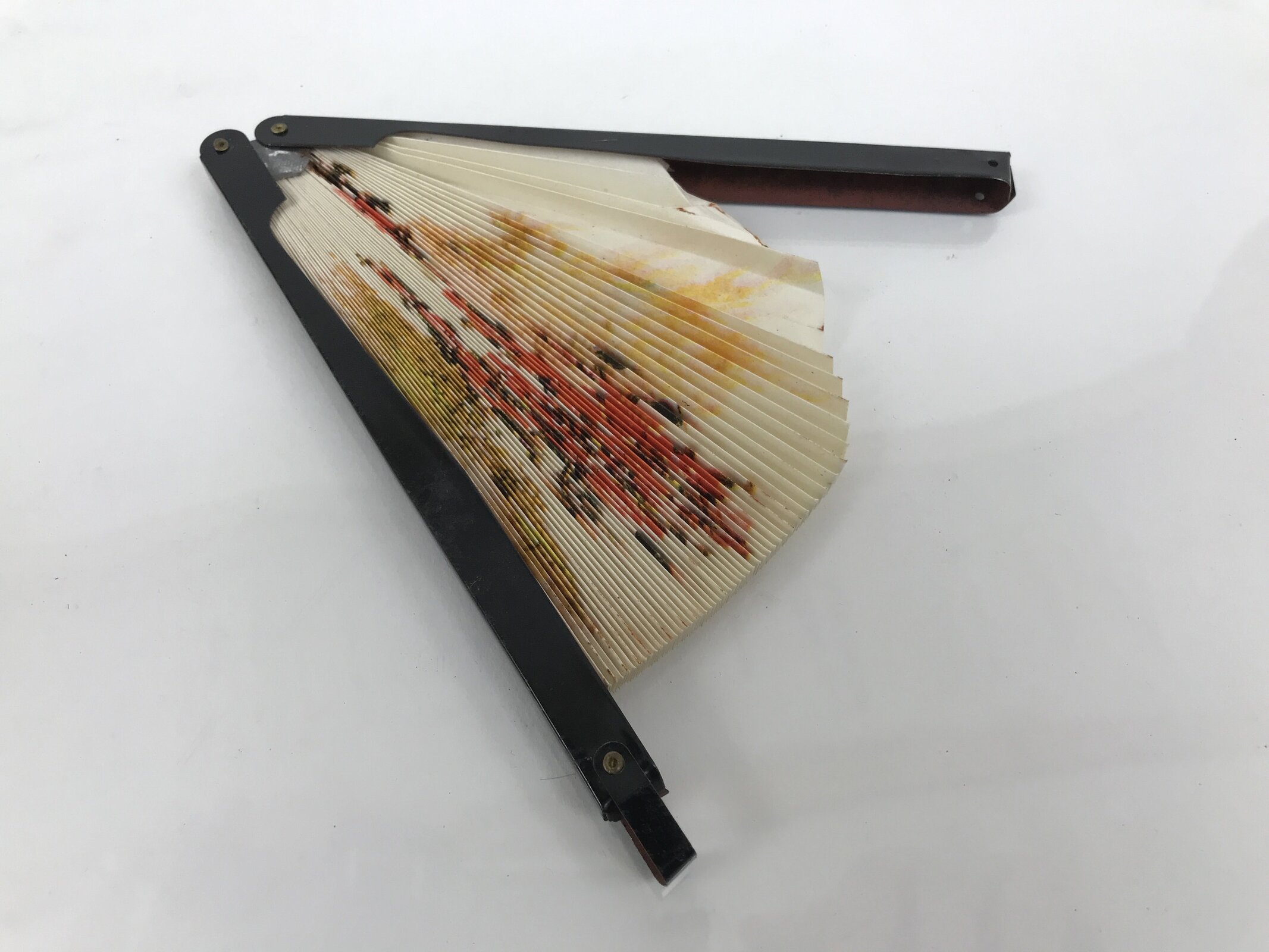 January 25, 2026Chinese Radial Paper Folding Fan Vtg Sensu Black Metal Frame Cherry Blossom 5D24