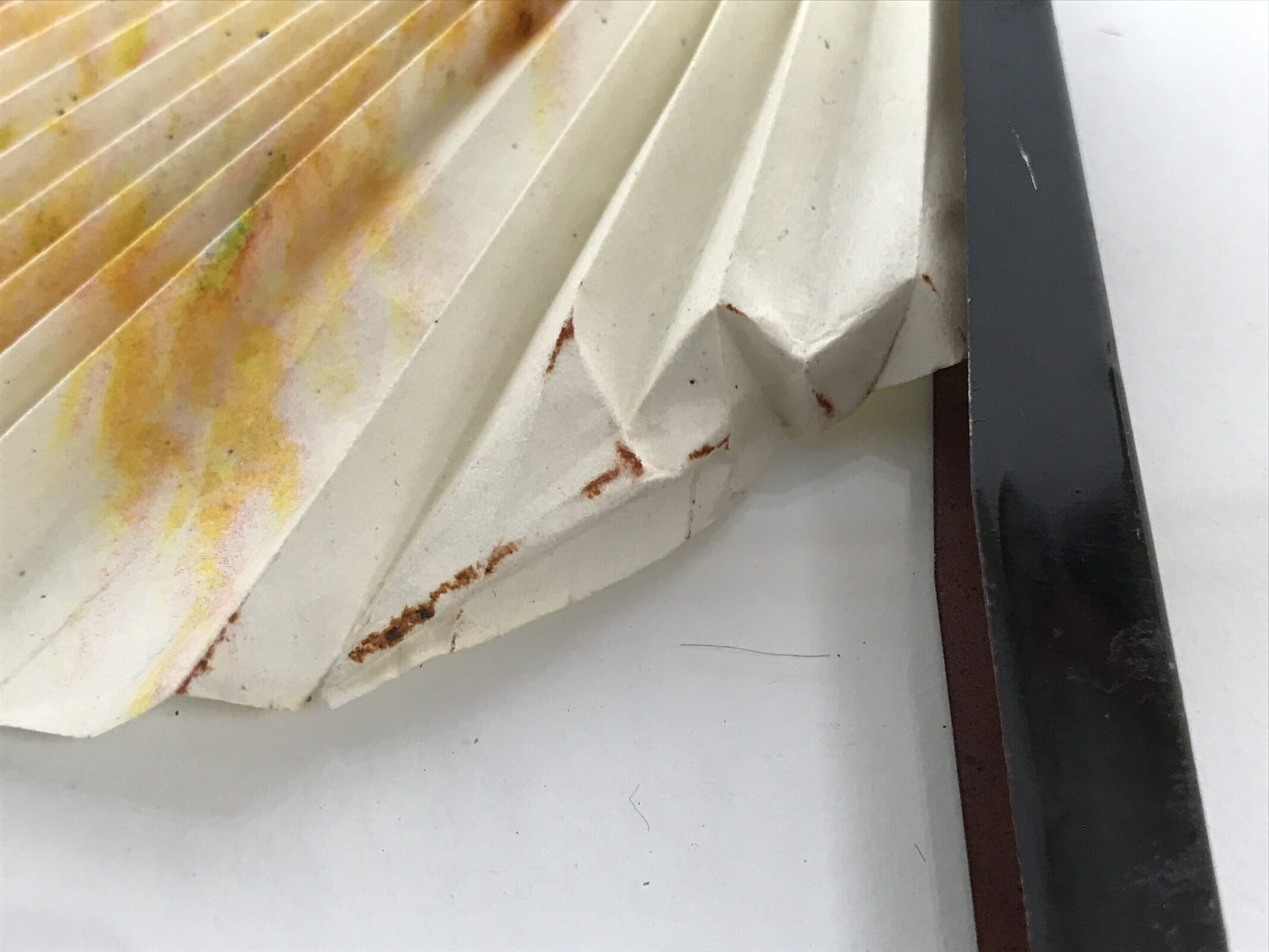 - Good condition considering age. Some rust on inside of handle. Paper crinkled on bottom left side (and has some rust staining). Wear and tear due to age. Please see the photos.